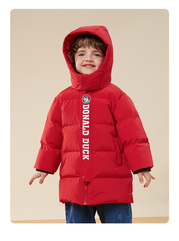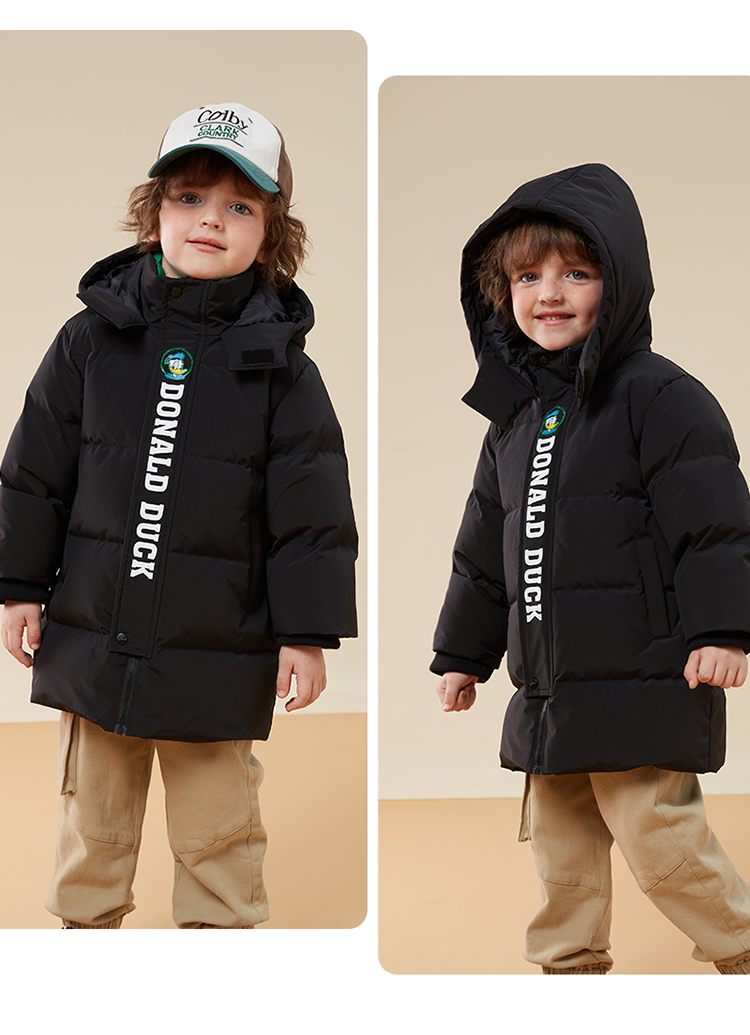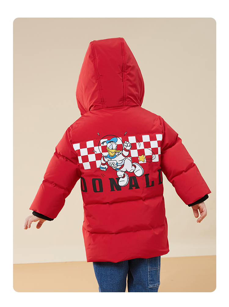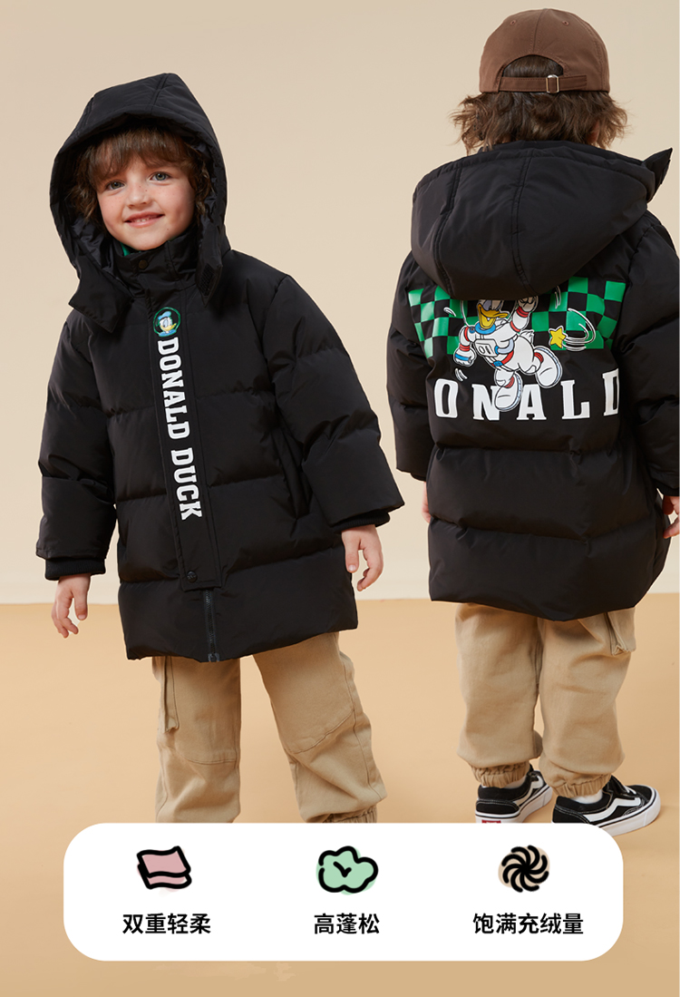 迪士尼唐老鸭秋冬童装连帽加厚保暖羽绒外套中长款款羽绒服234S1847