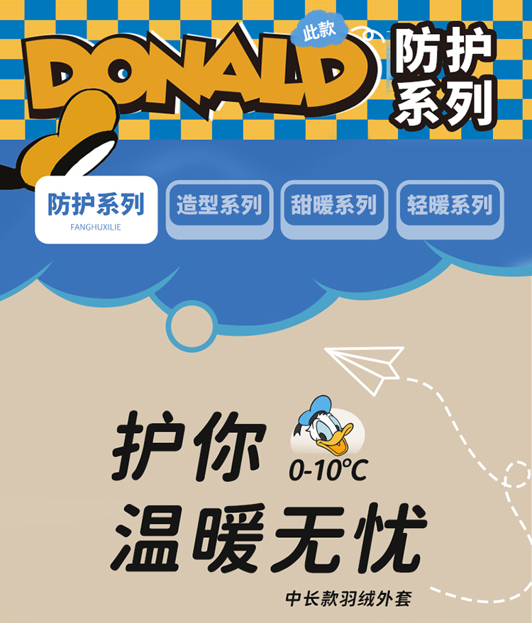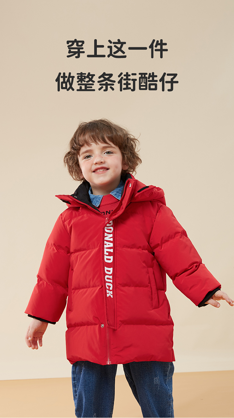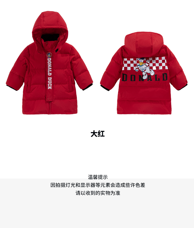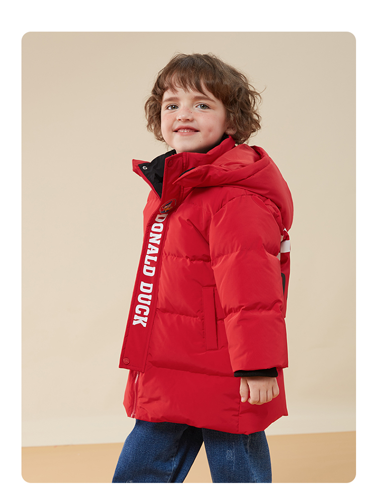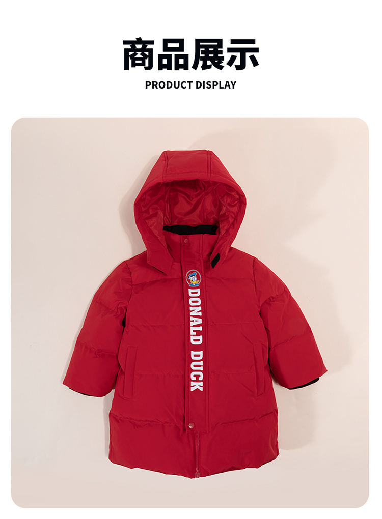 迪士尼唐老鸭秋冬童装连帽加厚保暖羽绒外套中长款款羽绒服234S1847