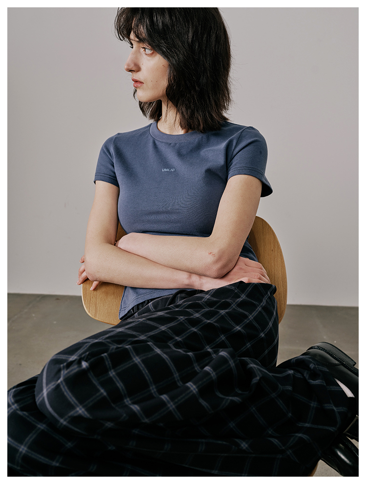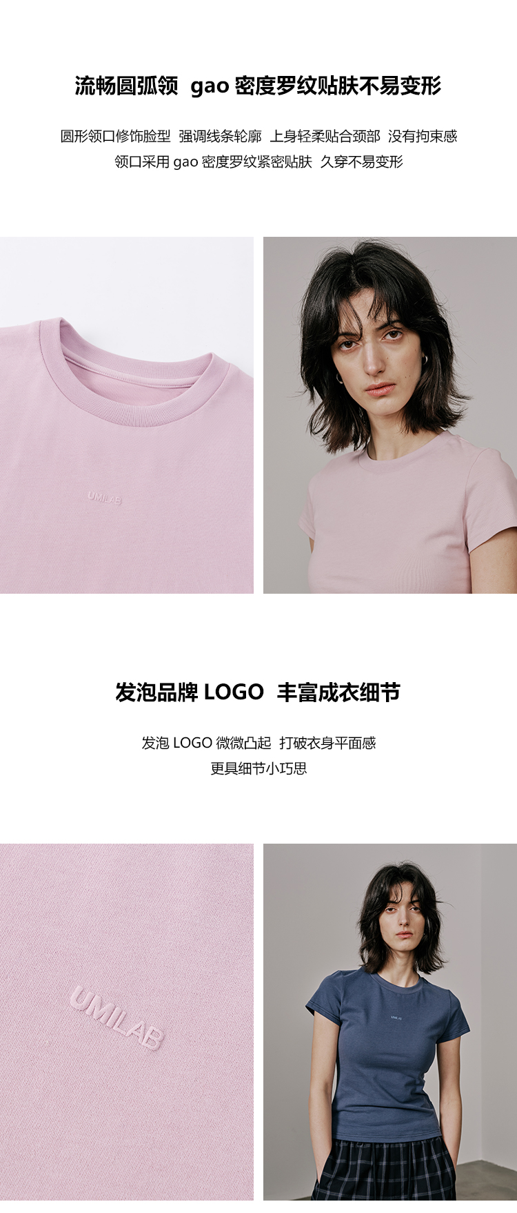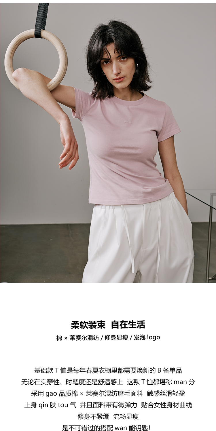 UMILAB【云游】棉×莱赛尔混纺触感丝滑发泡logo修身显瘦T恤T718M