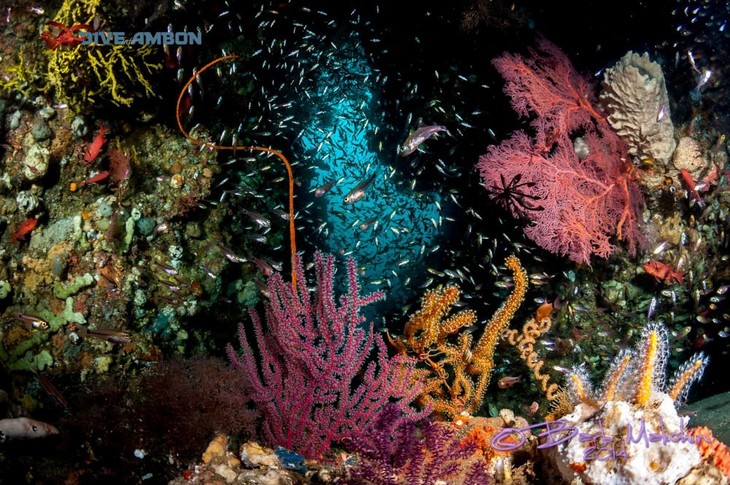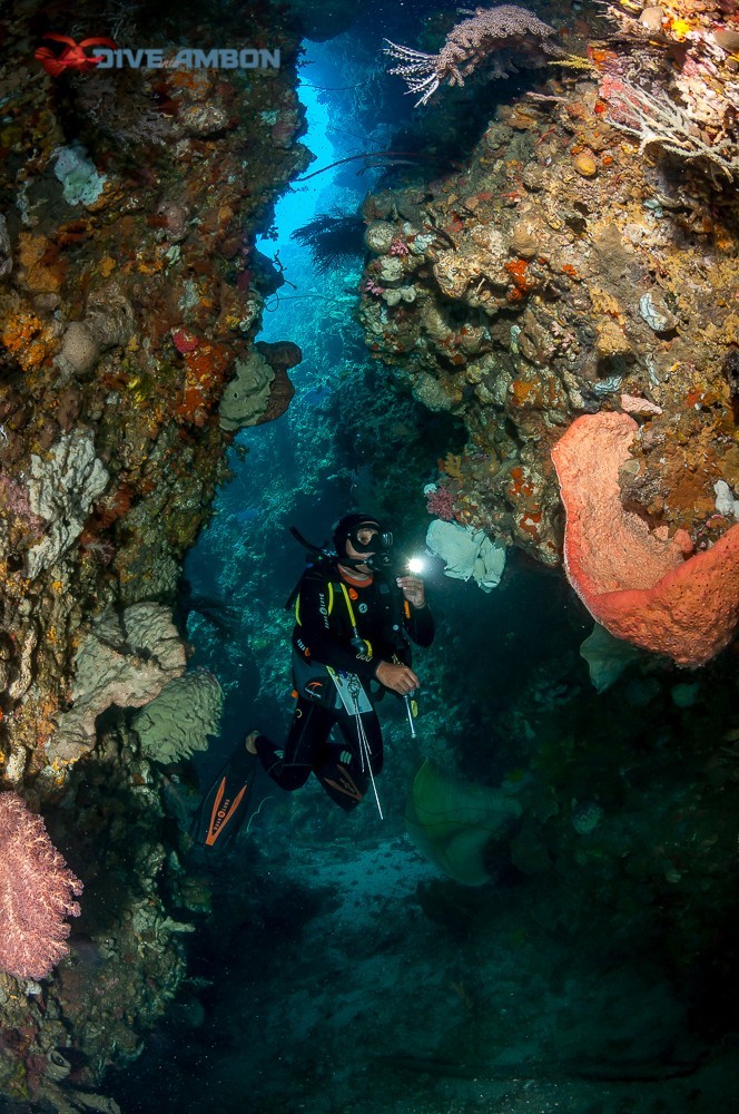 安汶的广角其实也很美,安汶的东南边是鲜少有潜水员去的峭壁潜水,健康的珊瑚、峭壁、钻洞、大鱼、海底山岭。