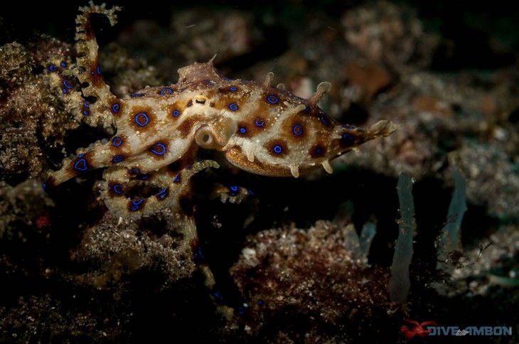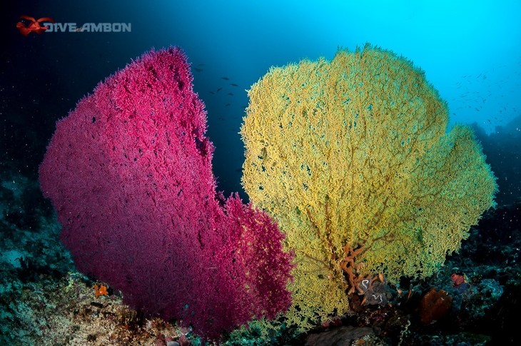 安汶以微距著称,在这里很见到不少罕见而美丽的微距生物。比如安汶蝎子鱼、龙王釉、拟态章鱼、火焰乌贼、海兔、蛙鱼、釉彩蜡膜虾等等。
