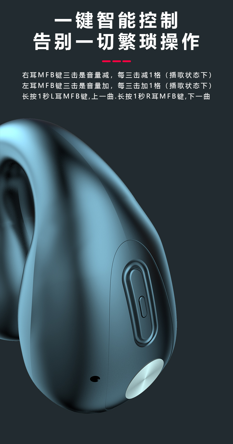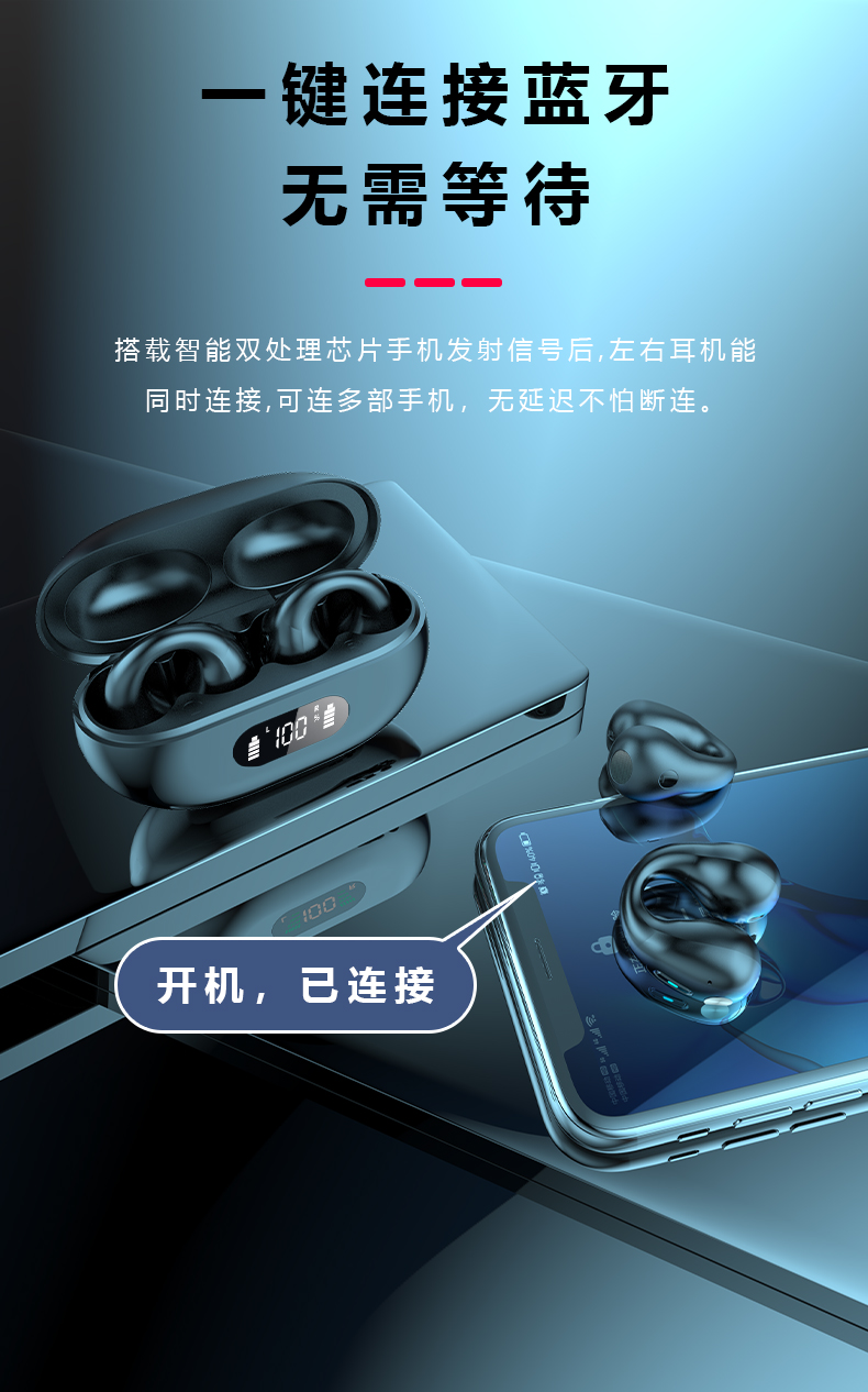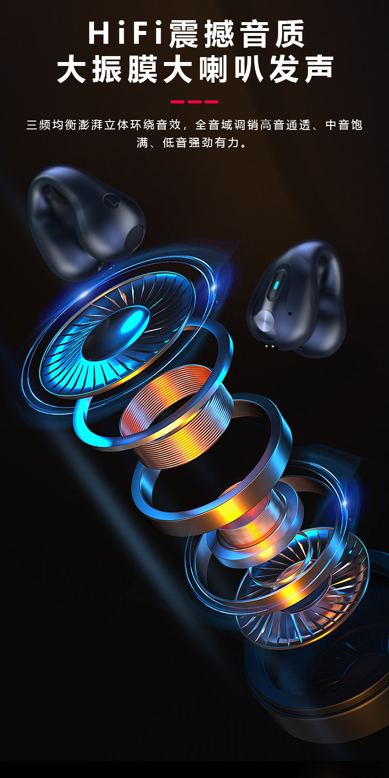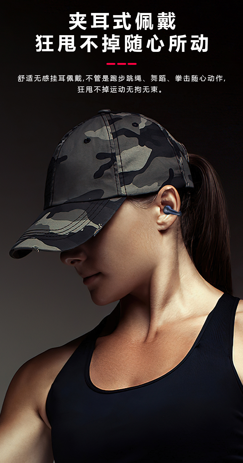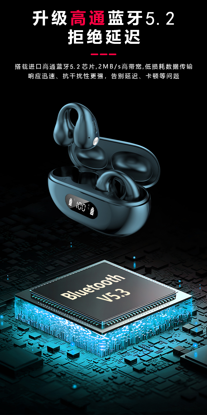 【全开放式 狂甩不掉】不入耳硅胶骨传导蓝牙耳机 蓝牙5.3天籁超清音质 硅胶亲肤材质无感佩戴 防水防尘骨传导夹耳蓝牙耳机