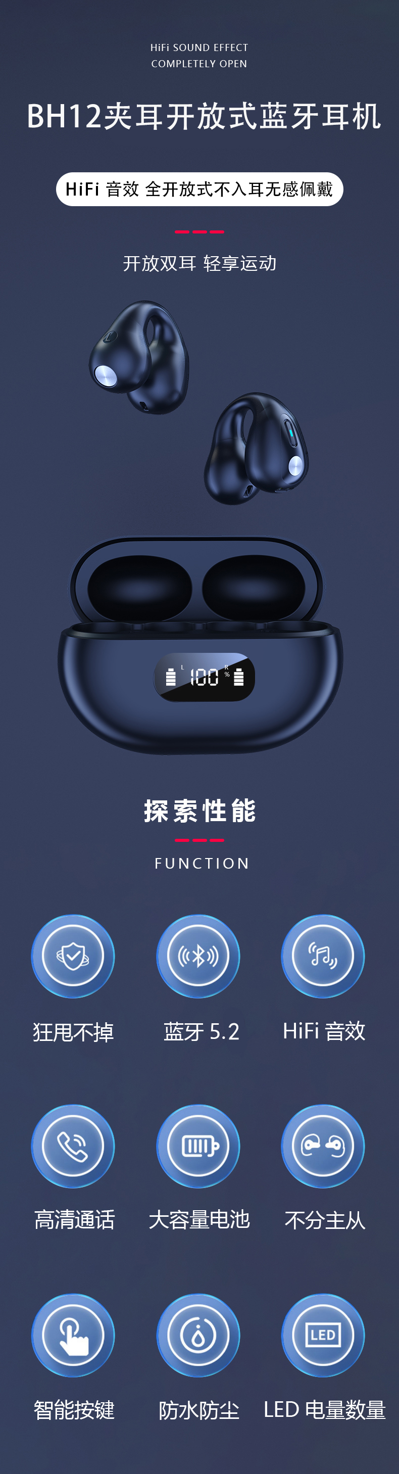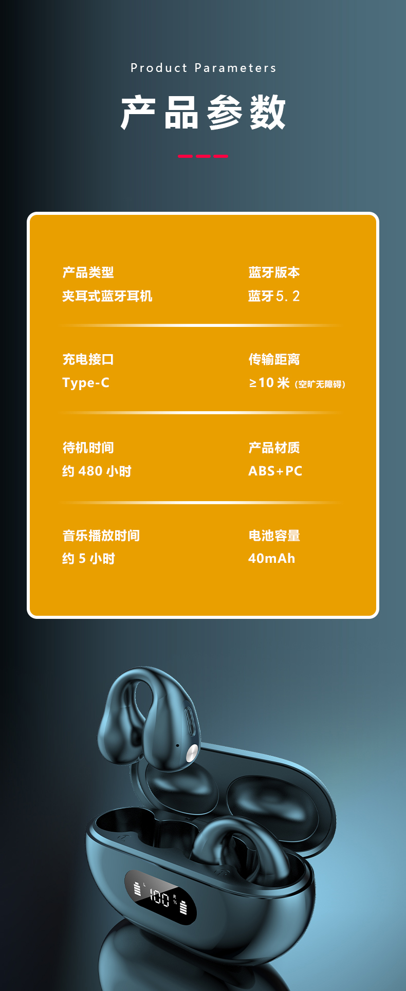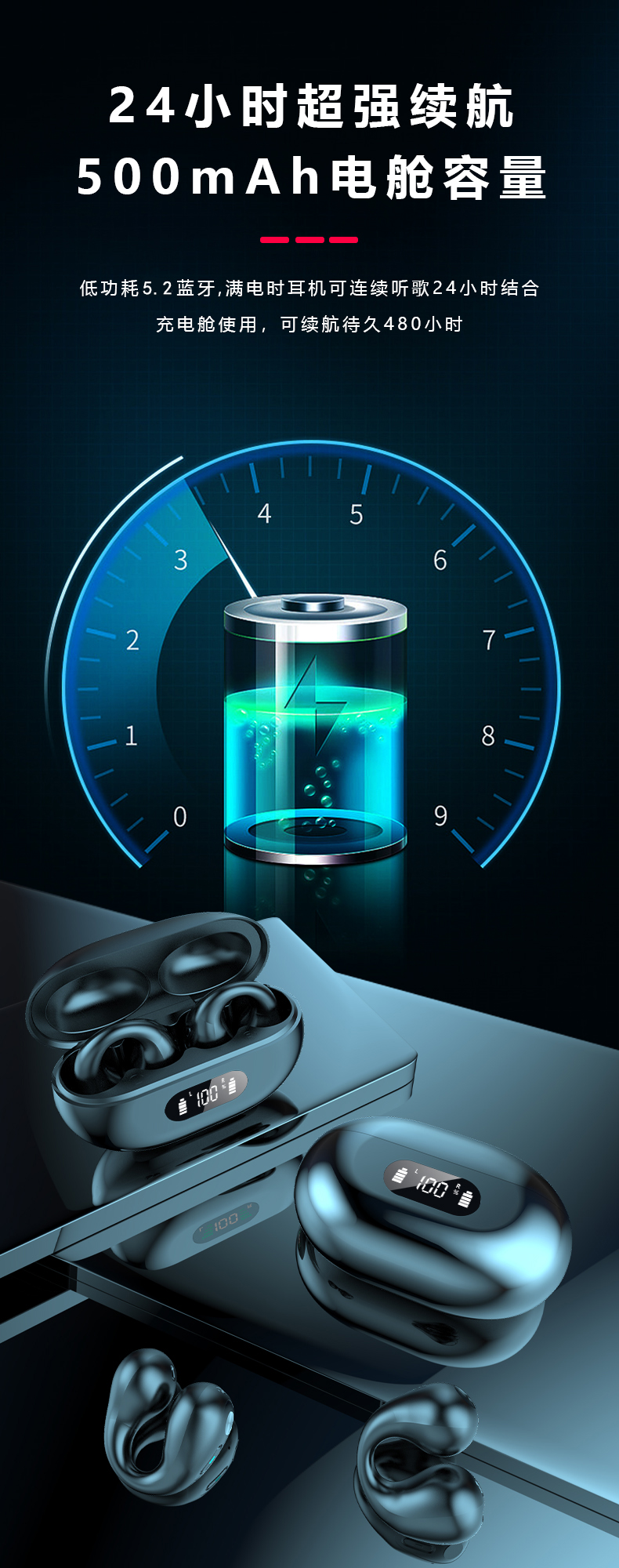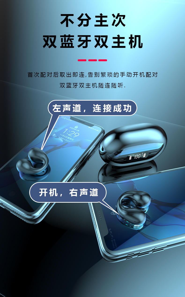 【全开放式 狂甩不掉】不入耳硅胶骨传导蓝牙耳机 蓝牙5.3天籁超清音质 硅胶亲肤材质无感佩戴 防水防尘骨传导夹耳蓝牙耳机