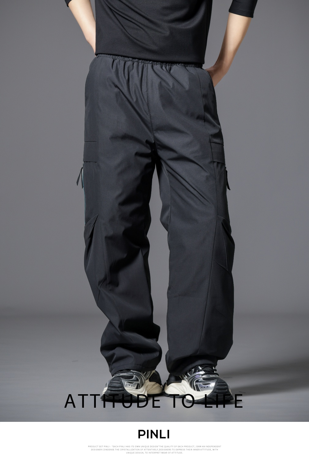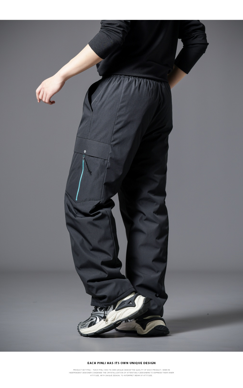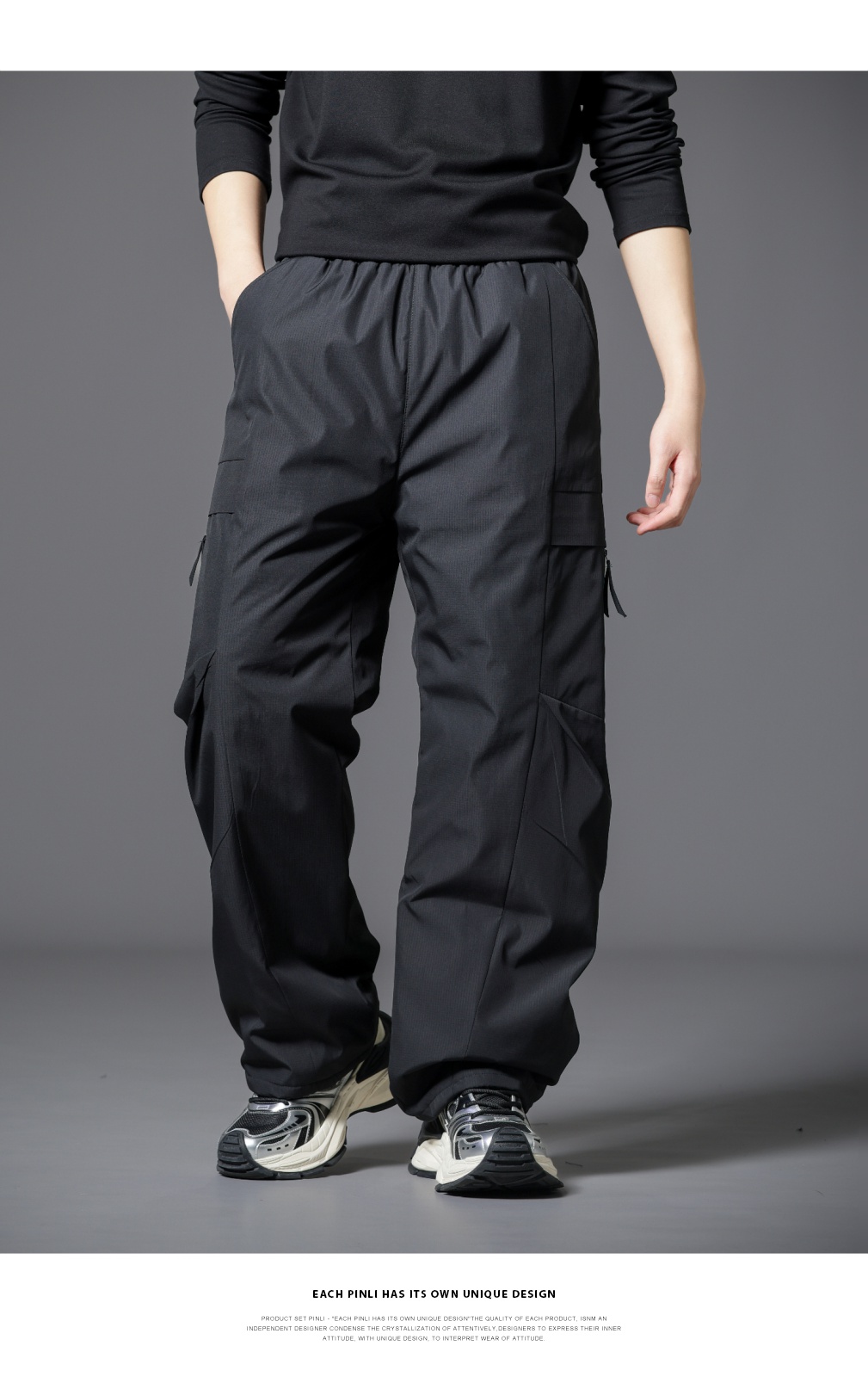 PINLI品立2025冬季新款工装风户外羽绒裤男士保暖休闲直筒长裤潮GD253117190