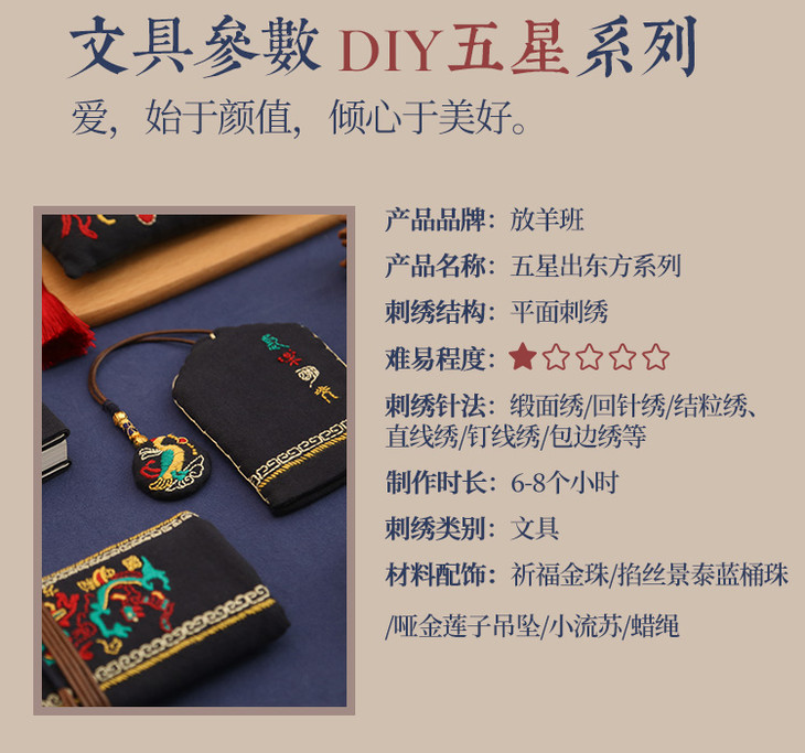 【放羊班新品】五星出东方材料包 刺绣文具古风diy刺绣