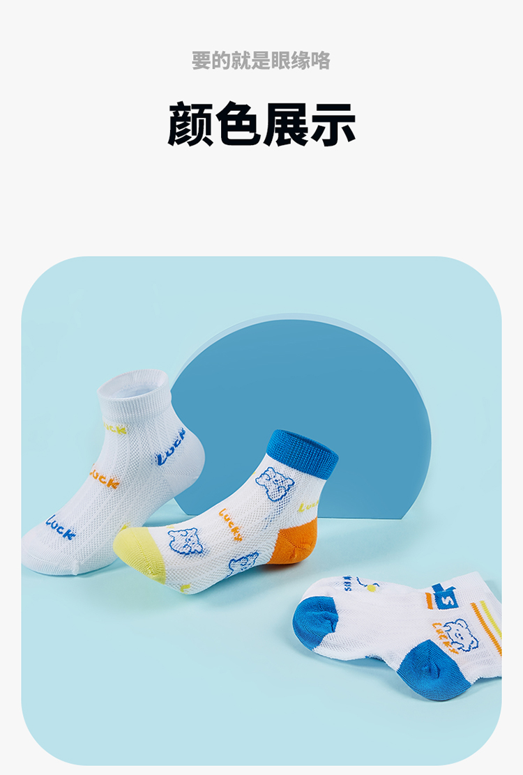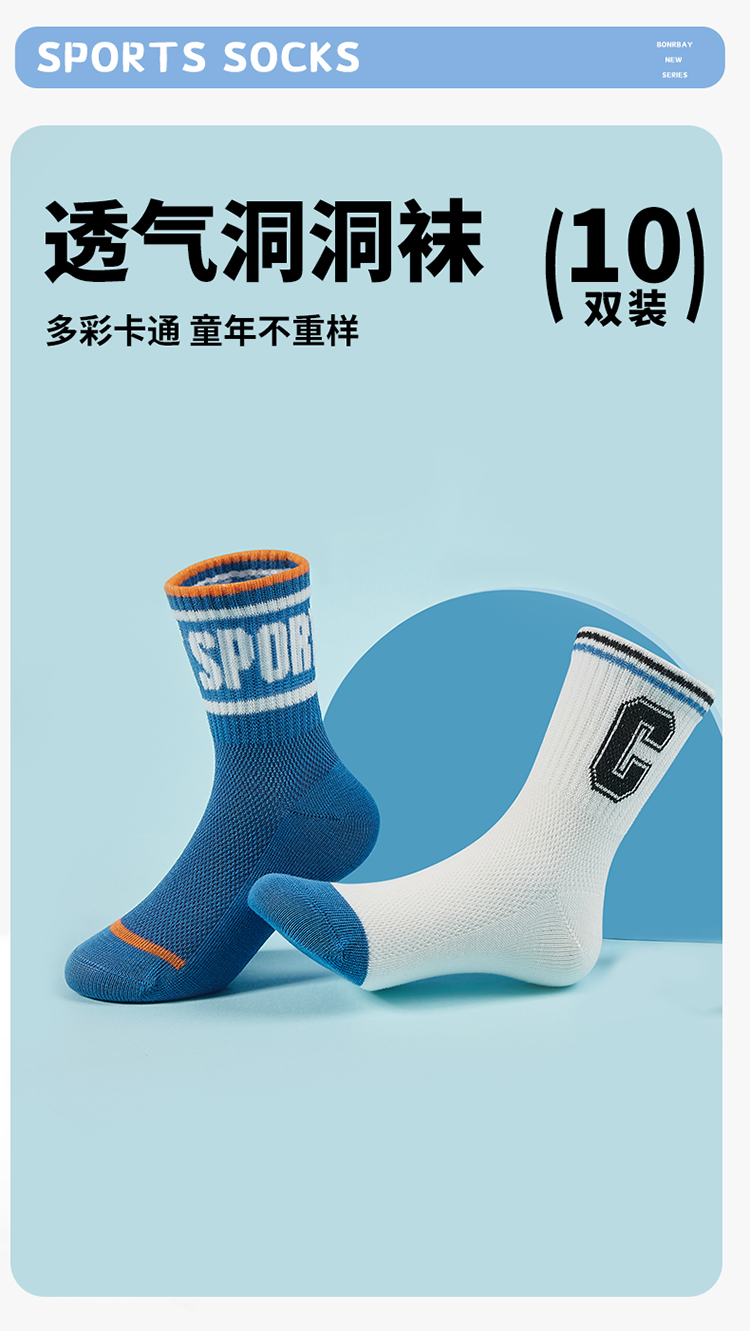 【10双装透气大网眼童袜】24春夏男童网眼袜棉弹舒适趣运动袜