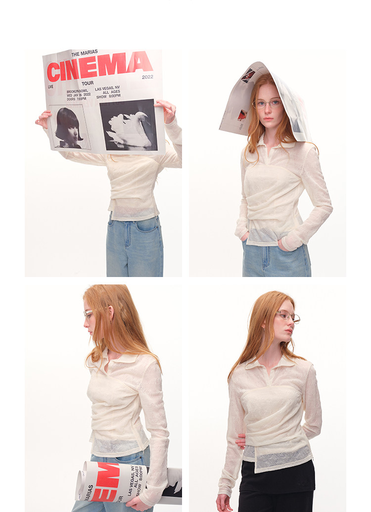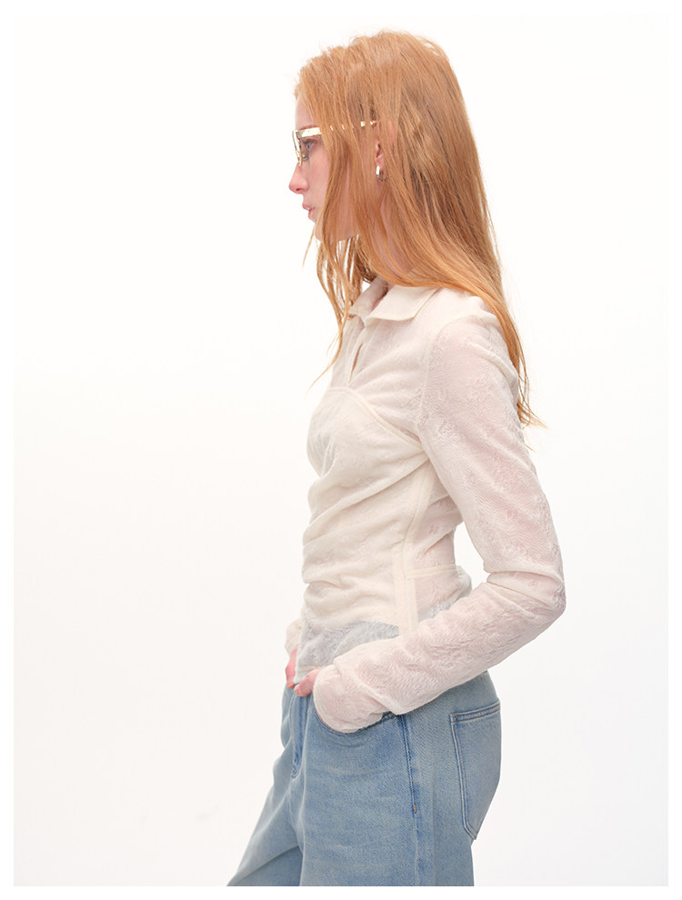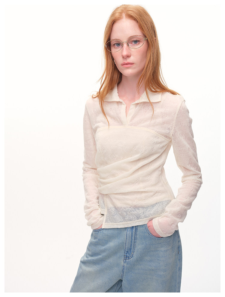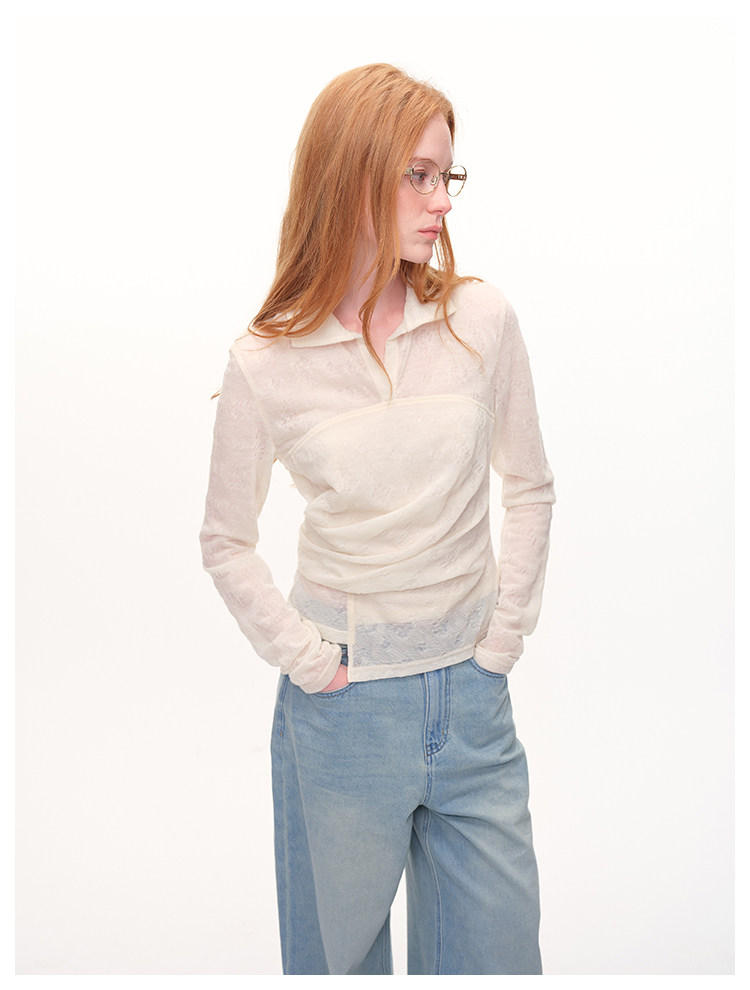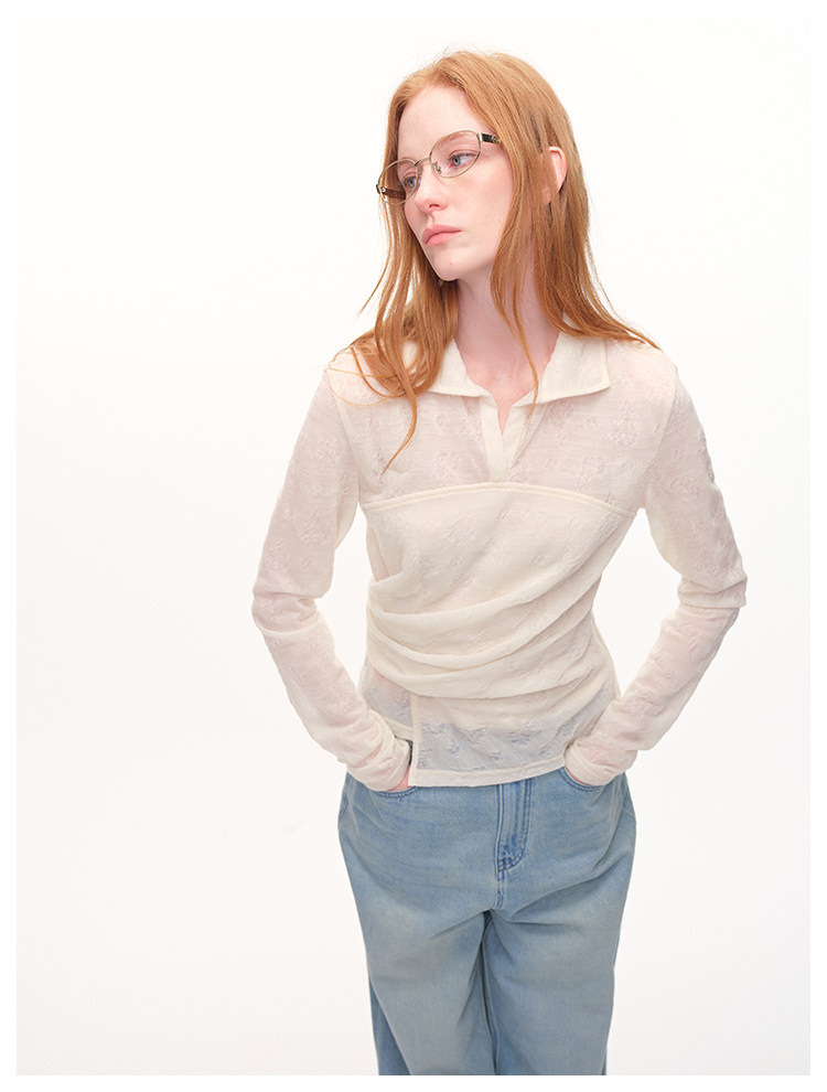 UMILAB|放空*复古老钱 100%亚麻镂空提花肌理翻领套头衬衫H1282W