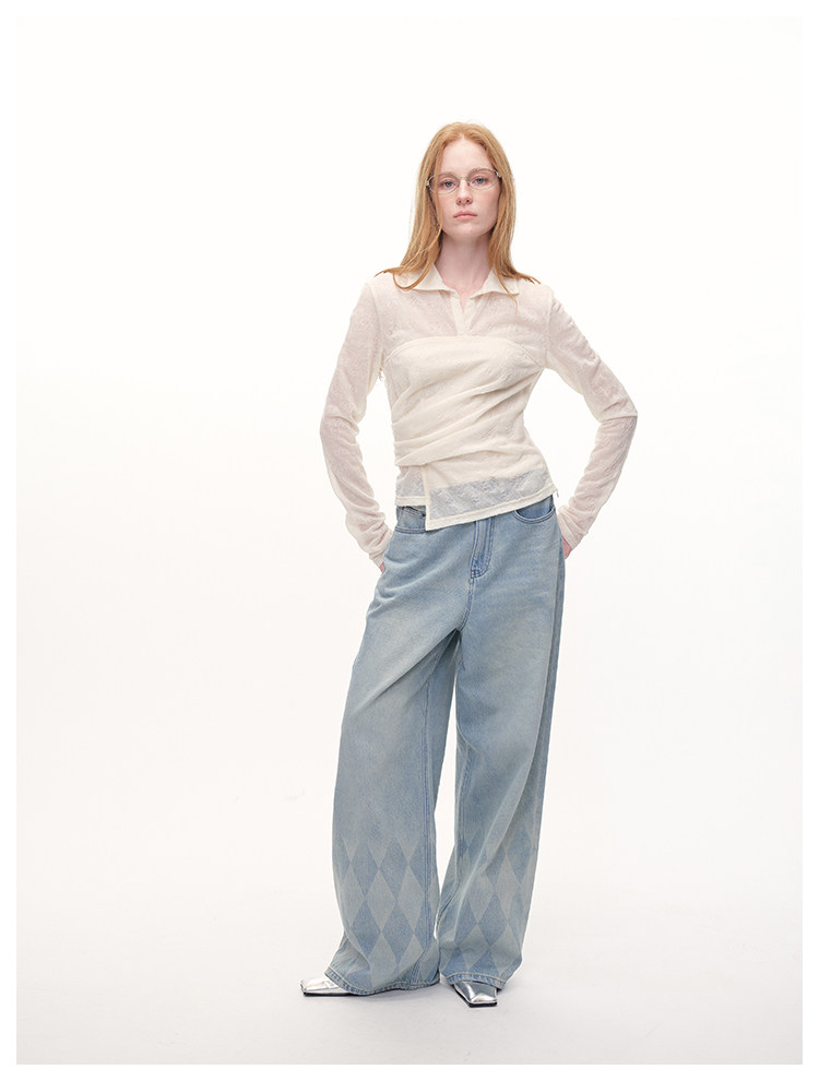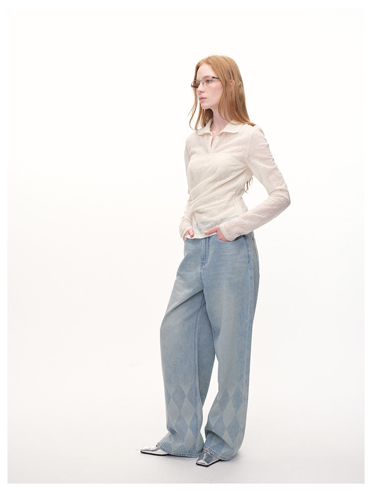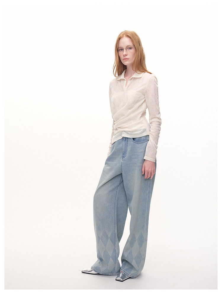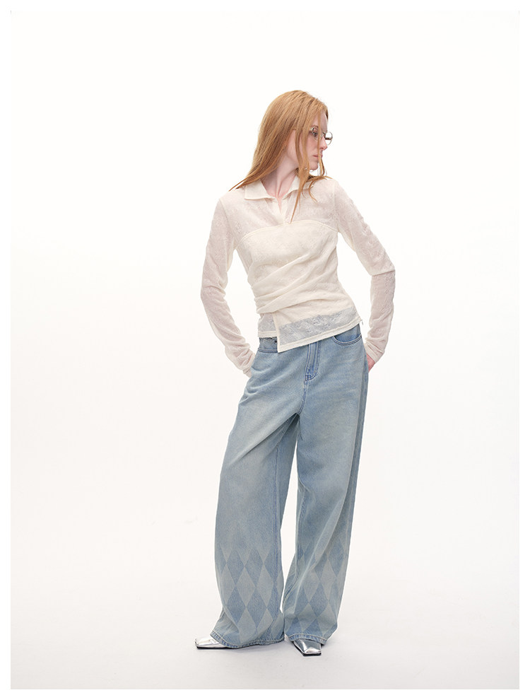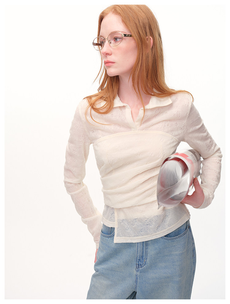 UMILAB|放空*复古老钱 100%亚麻镂空提花肌理翻领套头衬衫H1282W