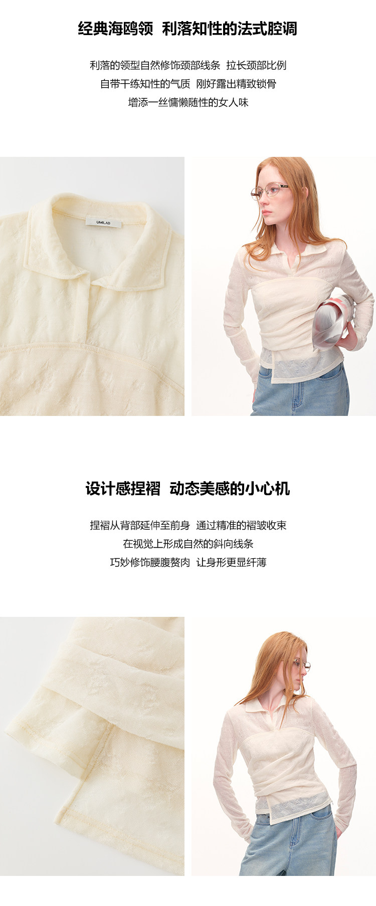 UMILAB|仙奢女神*巨显瘦 立体提花肌理羊毛 捏褶修身针织衫T795V