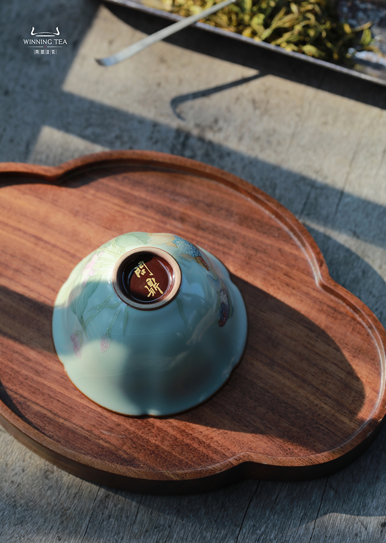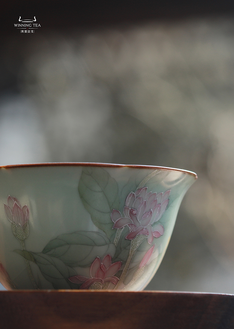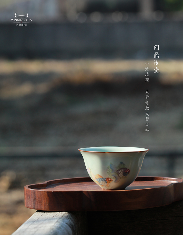 问鼎汝瓷天青老款大葵口杯(小池清荷)