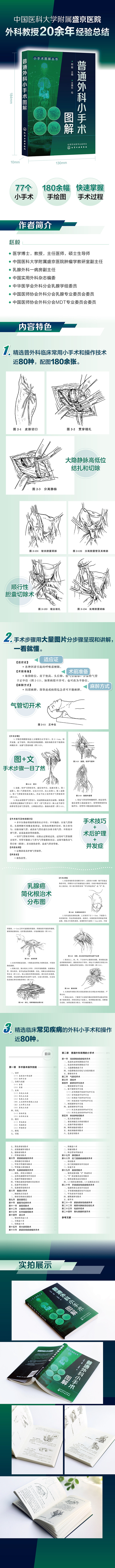 普外科小手术图解(第3版)为中国医科大学附属盛京医院外科教授20余年手术经验总结:精选普外科临床常用小手术和操作技术77个,每种小手术和小操作都从适应证、术前准备、麻醉方式、手术步骤、手术技巧和特别提示、术后处理、并发症共七个栏目来阐述。其中手术步骤用大量的线条图分步骤呈现和讲解,使读者一目了然,照书会做。手术技巧和特别提示是作者20余年手术经验的总结,帮助读者抓住关键要点。 本书适用于基层普外科医生、大中型医院低年资住院医生。