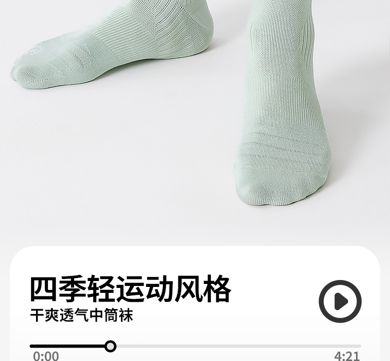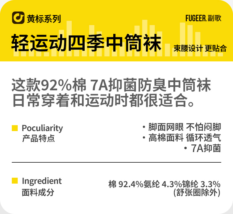 副歌秋冬新品柔感高棉轻运动系列7A抗菌防臭中筒男袜4双装2622(2月5号后发货)