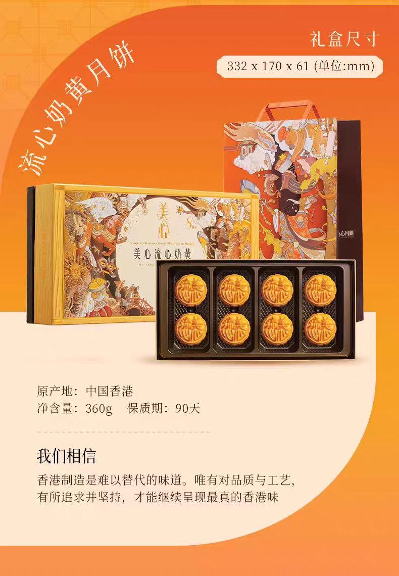 【顺丰包邮】香港美心流心奶黄月饼礼盒装流沙蛋黄港式进口中秋佳节送礼品360g/盒