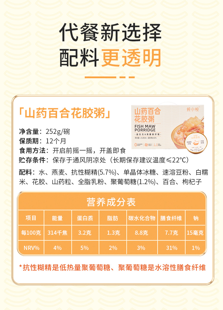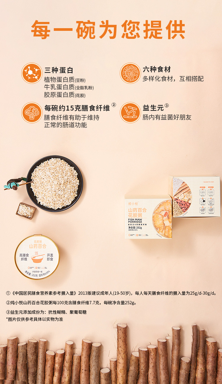 炖小悦山药百合花胶粥 252g/碗 6碗/提