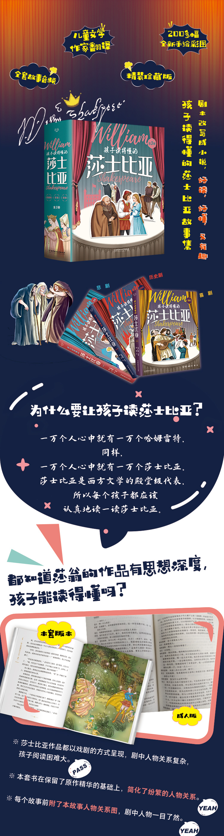 【6~12岁】孩子读得懂的莎士比亚(3册精装)| 儿童文学作家翻译&手绘插画