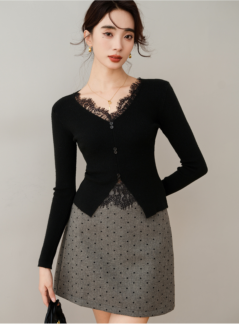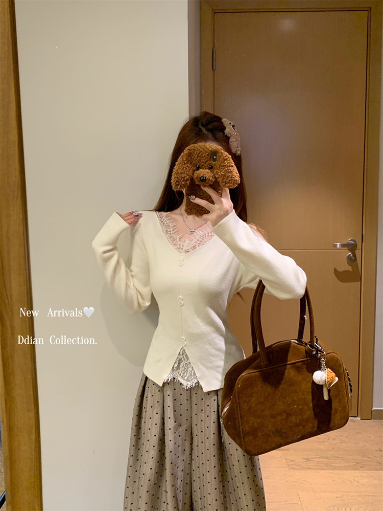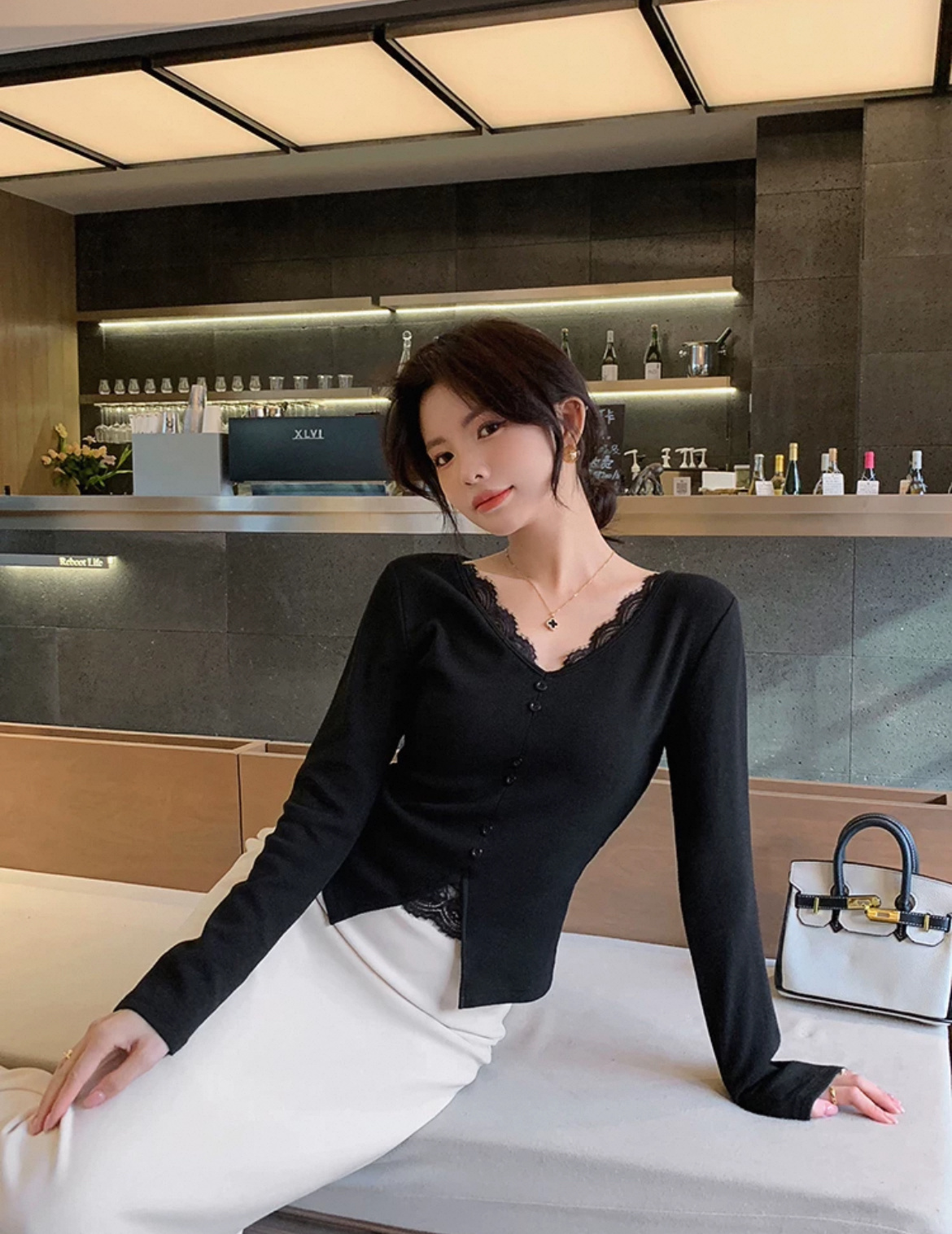 【意大利口樱西玛ENXIMANE·法式V领蕾丝拼接打底衫】今年蕾丝元素狠流行,巨纯欲迷人四单穿鲁穿都超级美!必买精致内搭!!法式蕾丝+合身廓形衬得人很温婉,螺纹针织面料,QQ弹弹舒适亲肤