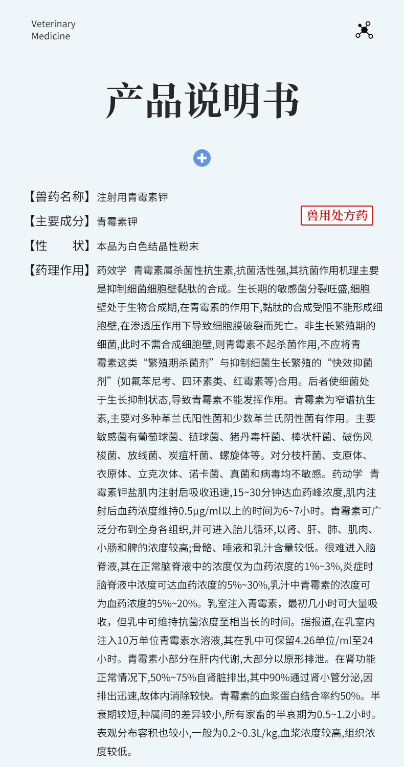 华畜兽药80万单位青霉素钾注射用猪牛羊猫狗鸡鸭抗菌消炎混合感染
