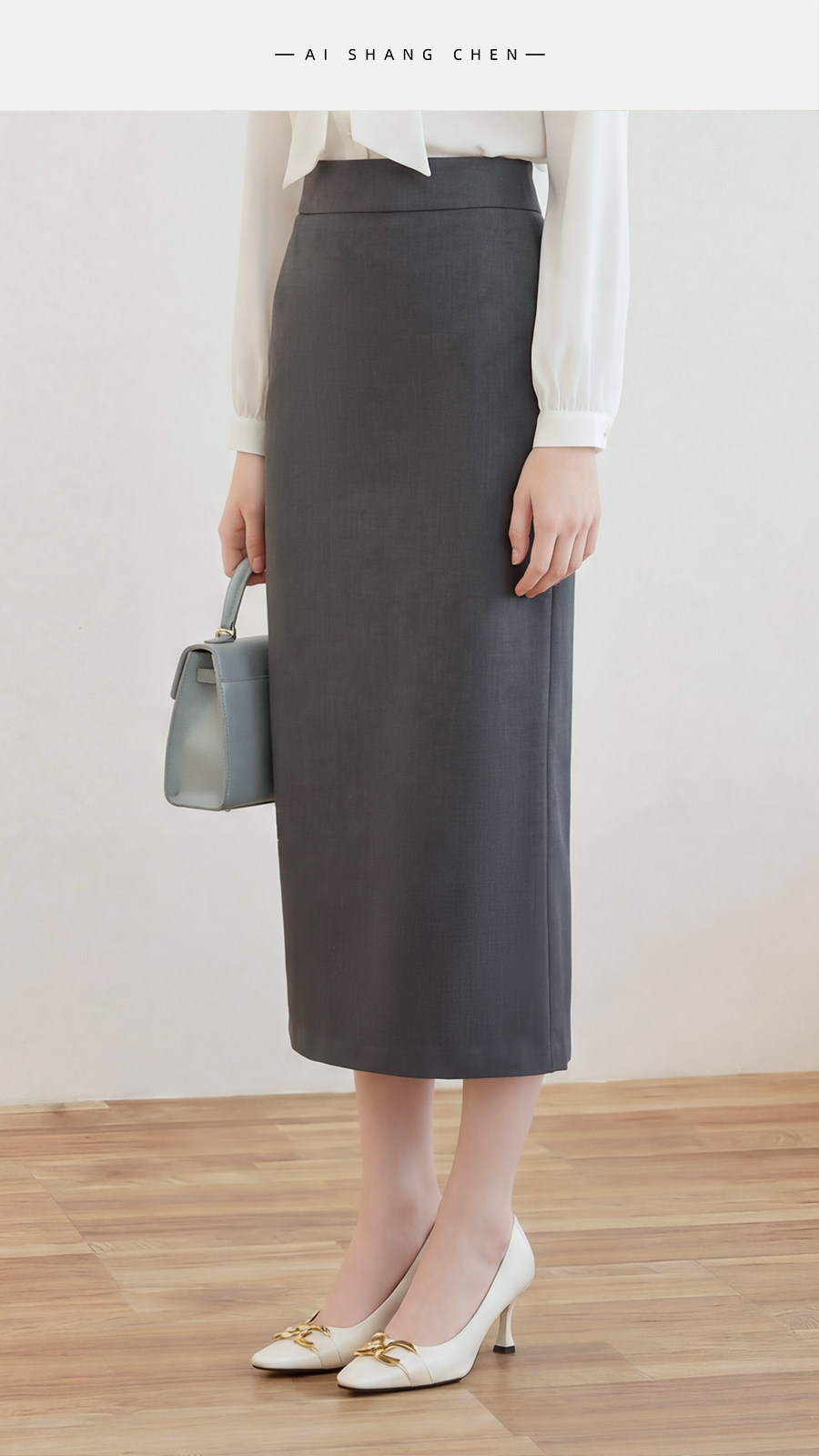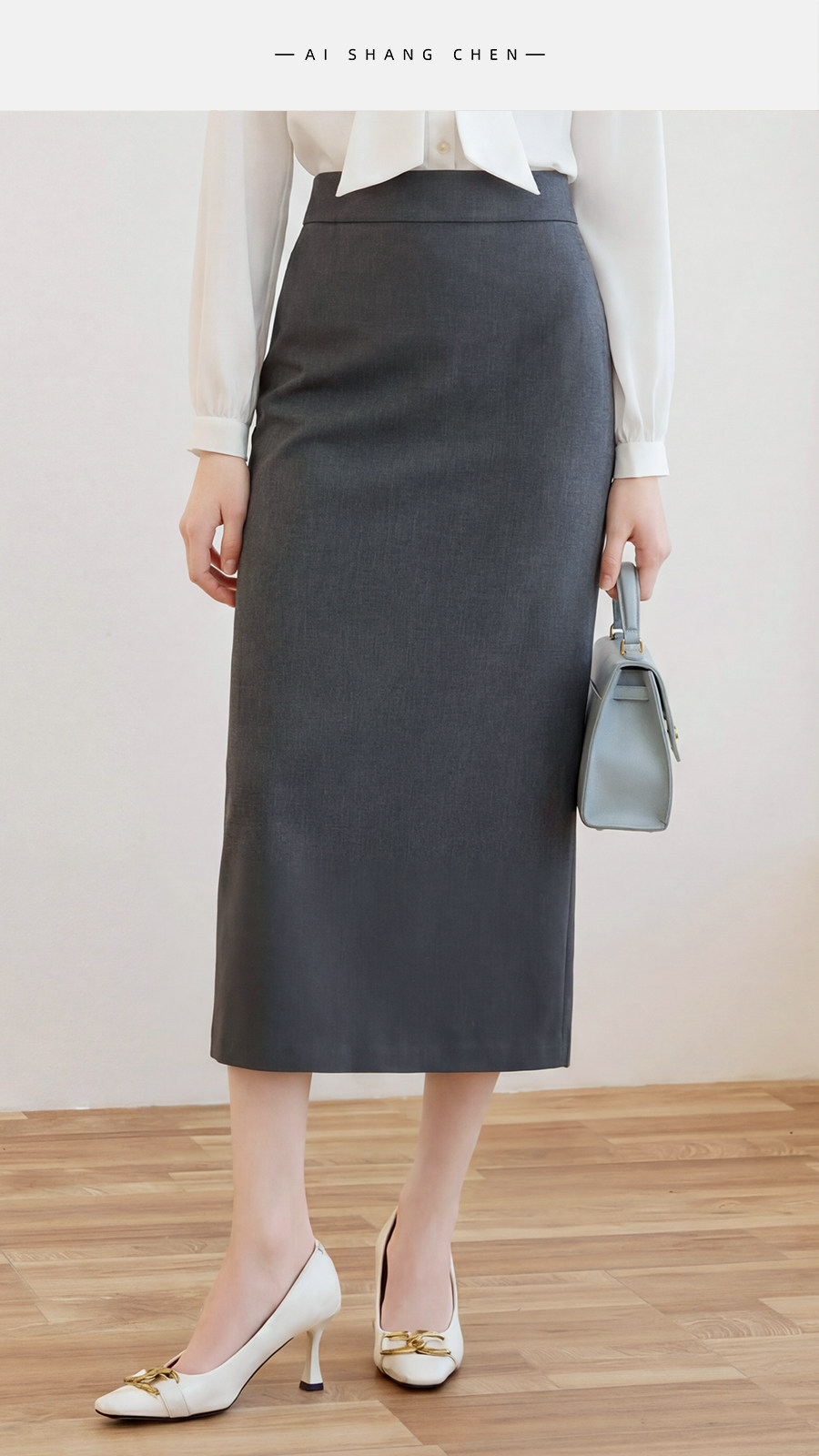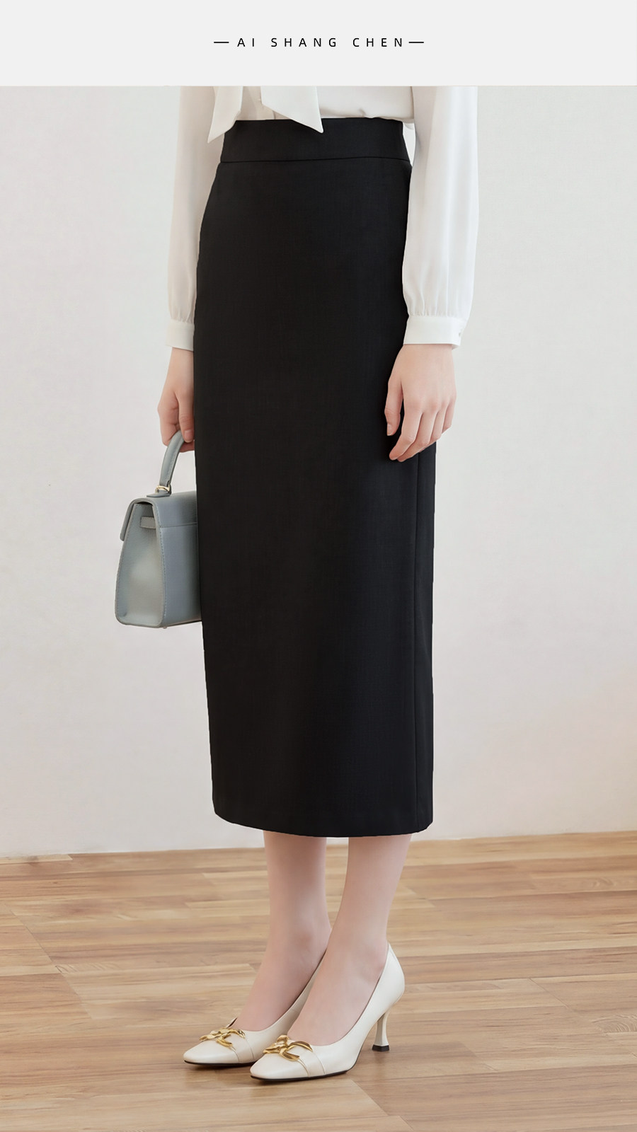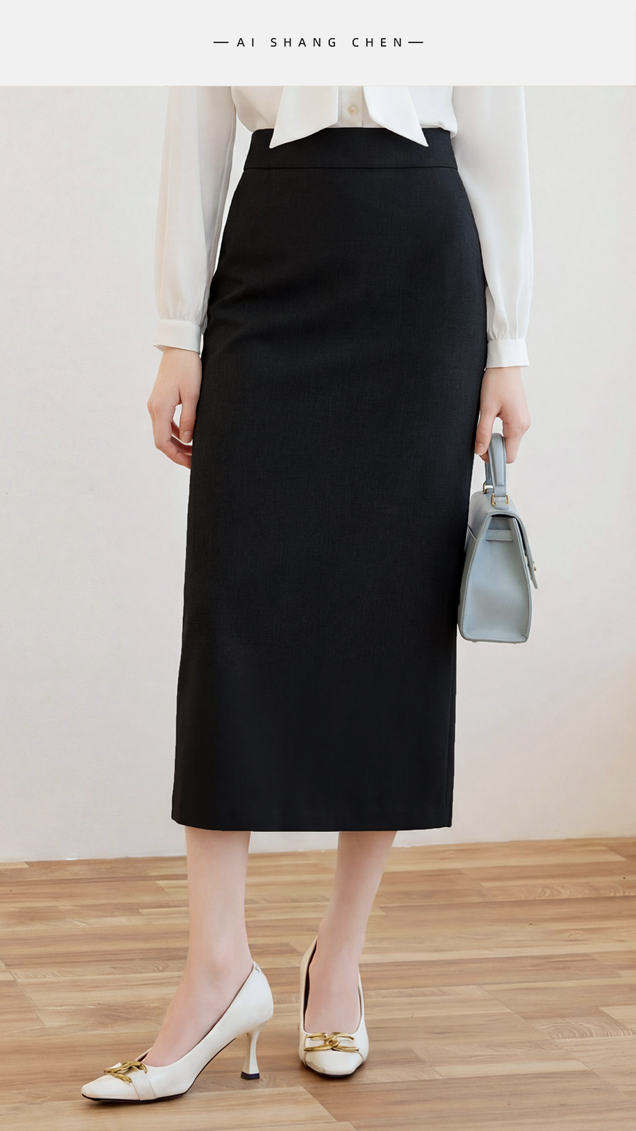 艾尚臣【四季款】通勤风高腰超模腿精裙后开叉半身裙女显瘦一步裙