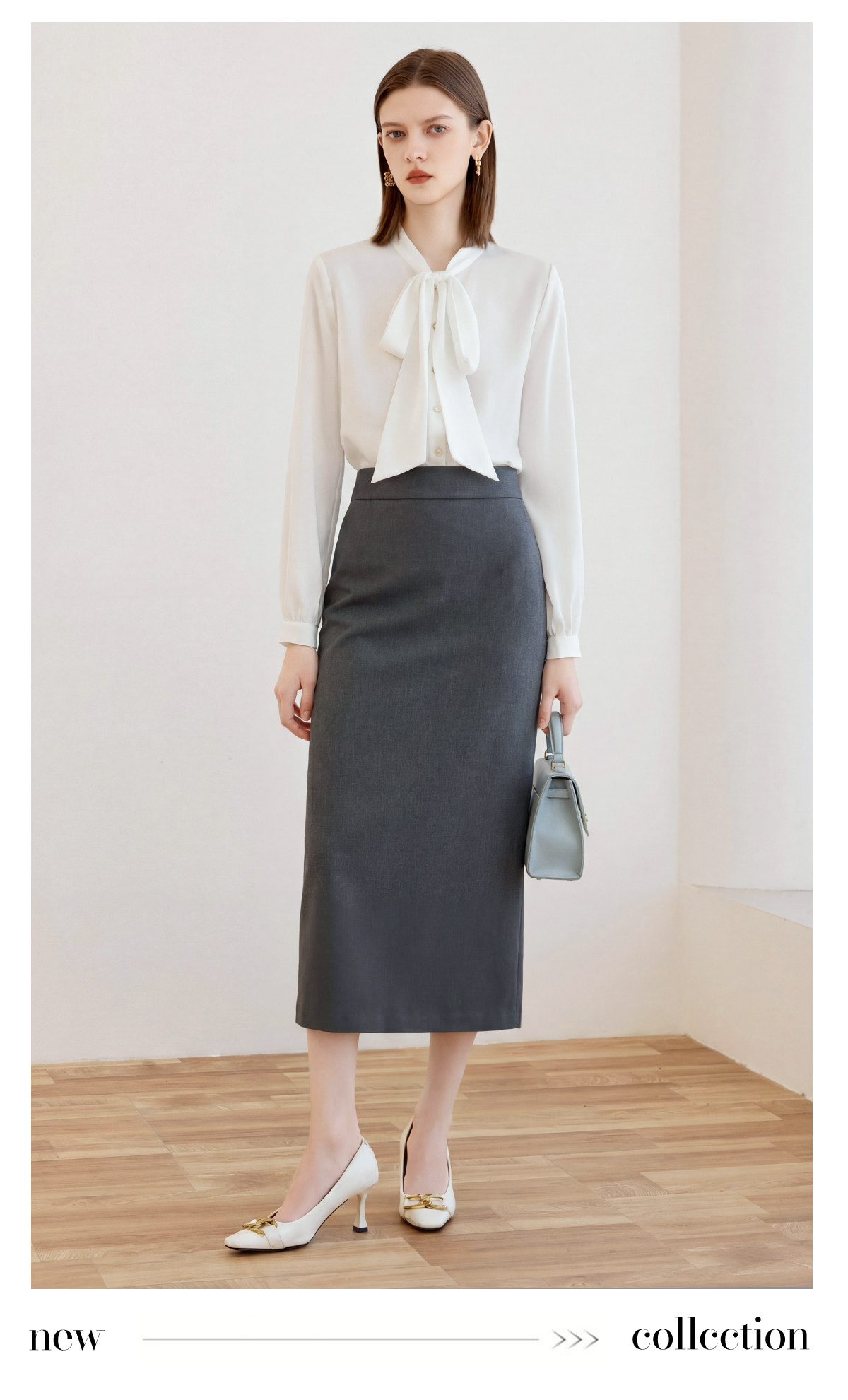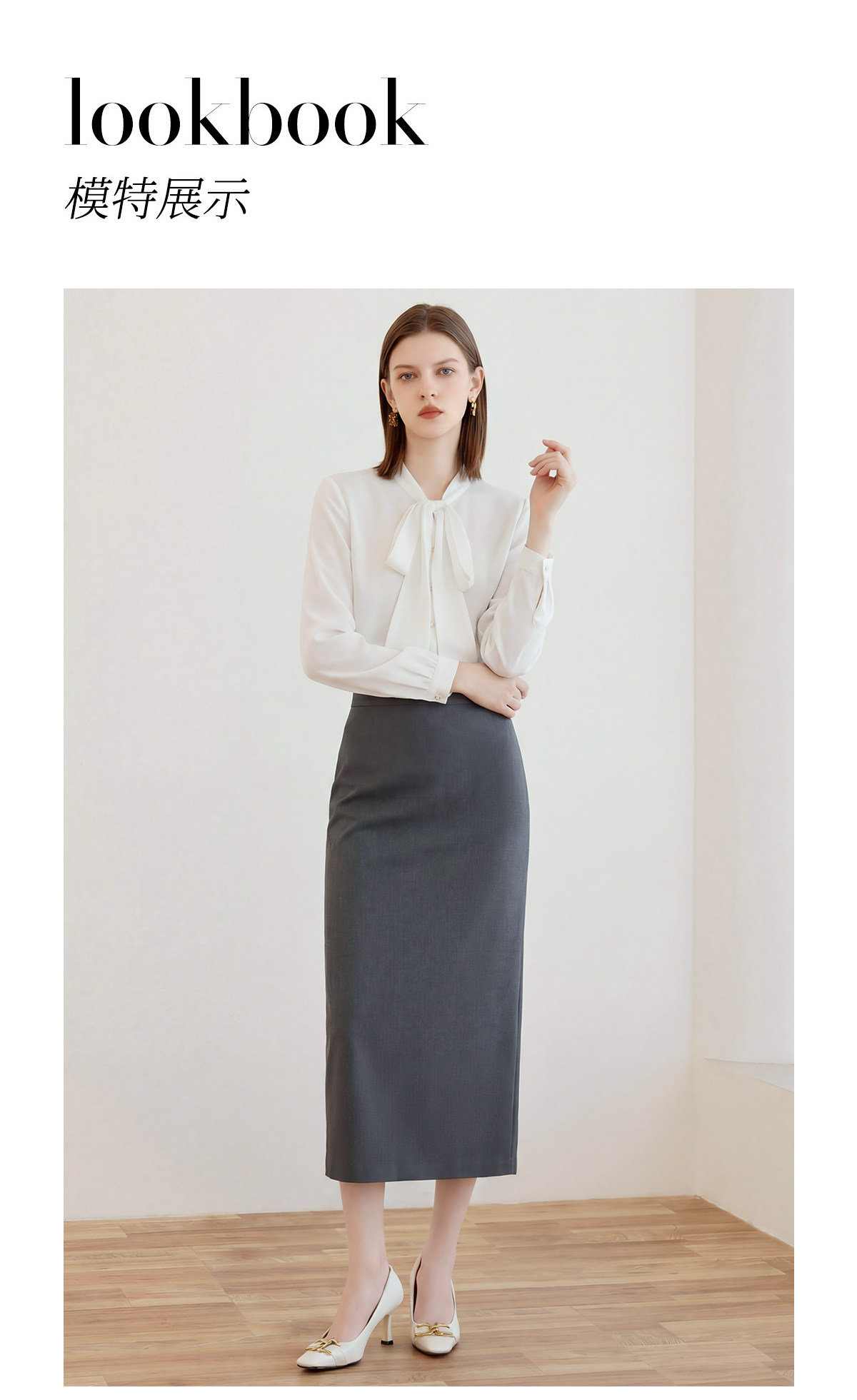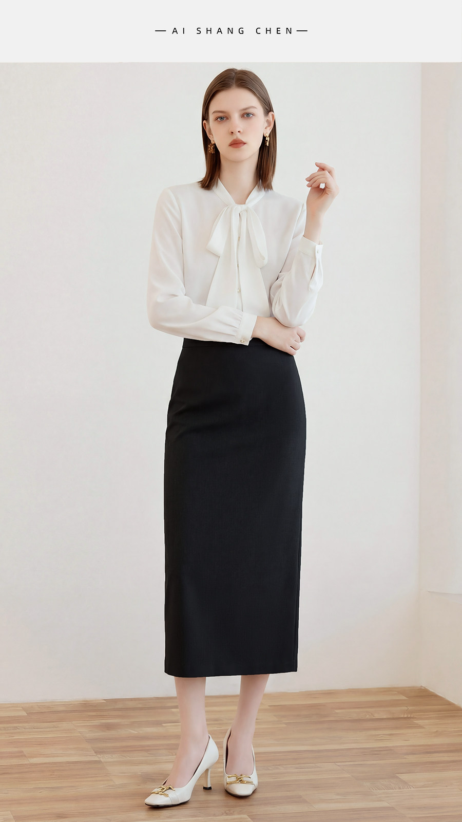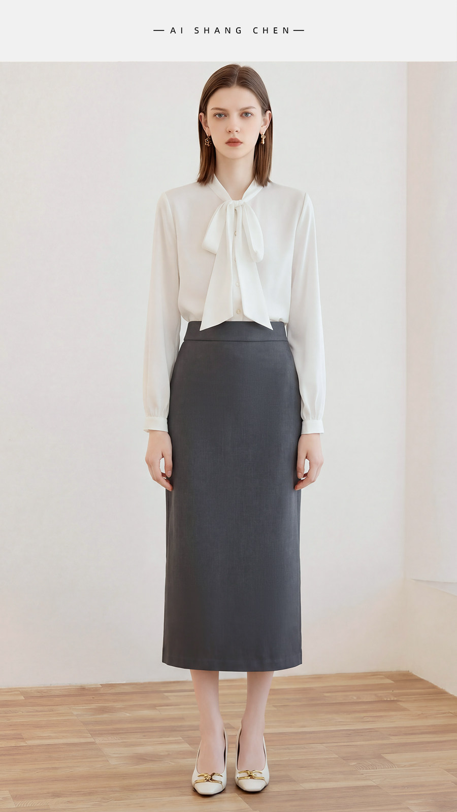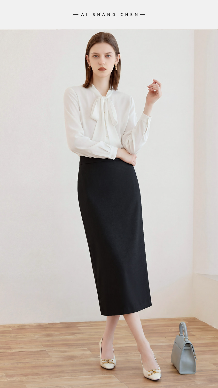 艾尚臣【四季款】通勤风高腰超模腿精裙后开叉半身裙女显瘦一步裙