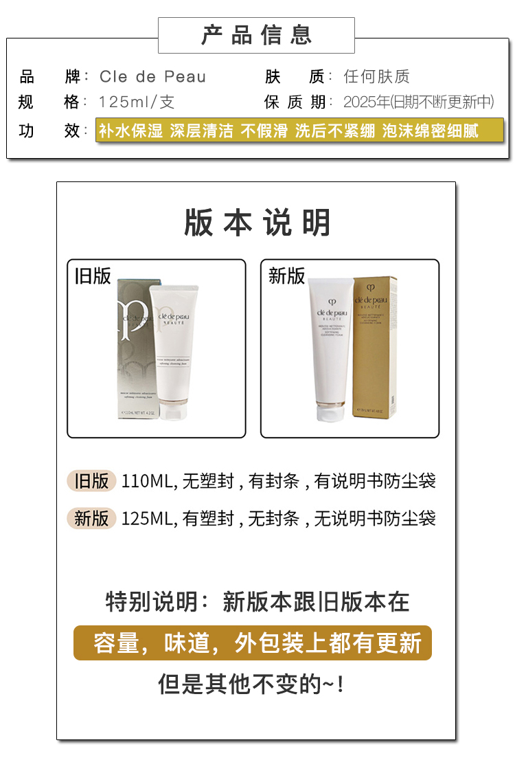 【临期清仓 效期至26.4月】肌肤之钥CPB净采洁面膏洗面奶125ml 深层净采洁面膏湿润干皮 新版 滋润/清爽型 (效期至:2026年4月)介意勿拍!