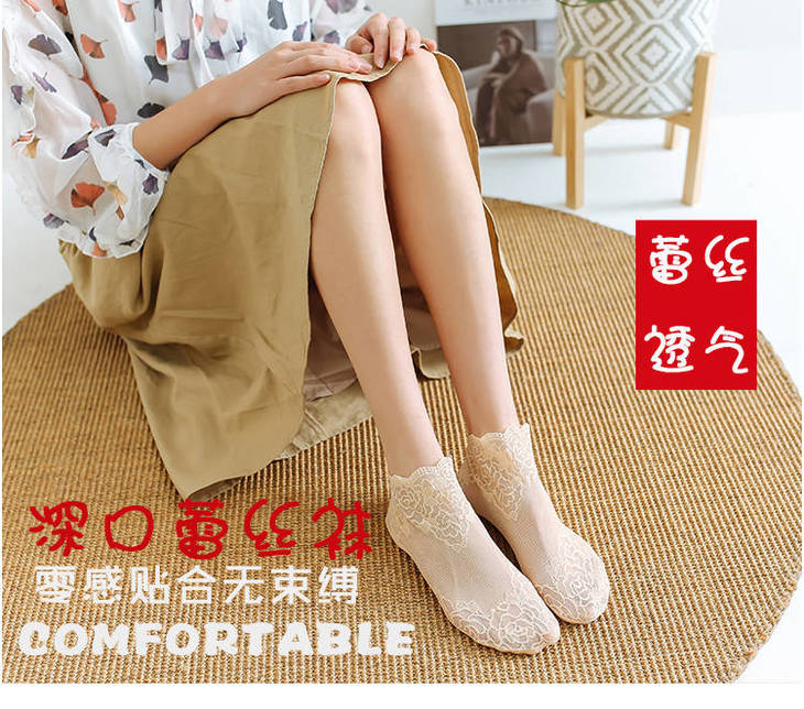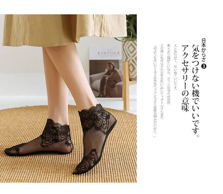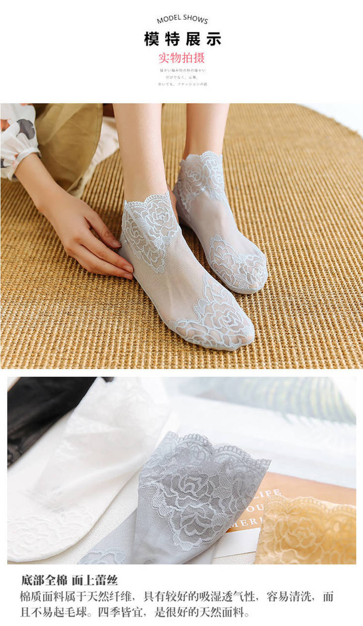 4双装春夏季蕾丝船袜子女超薄日系短袜网纱性感低帮透气隐形袜套