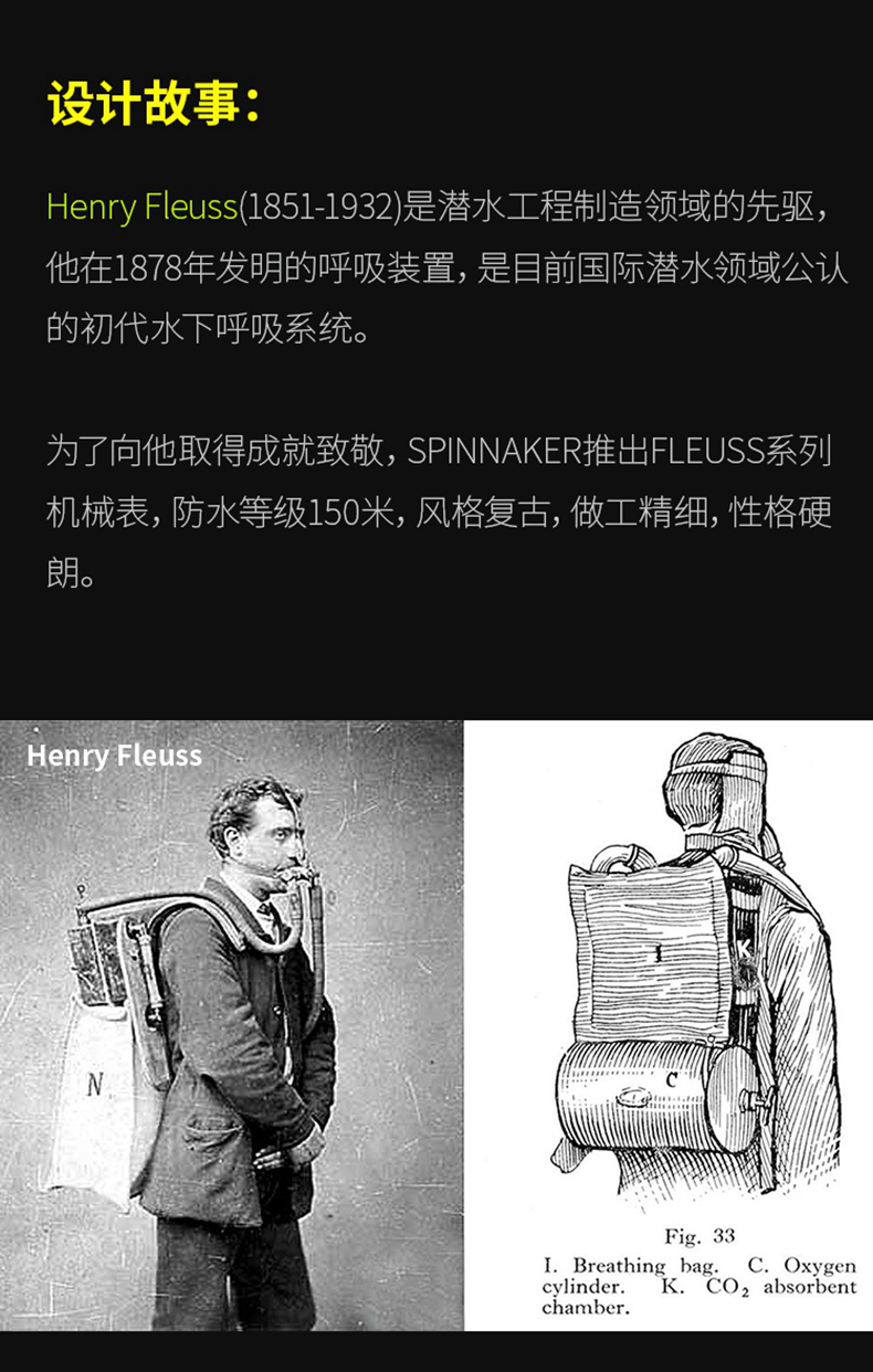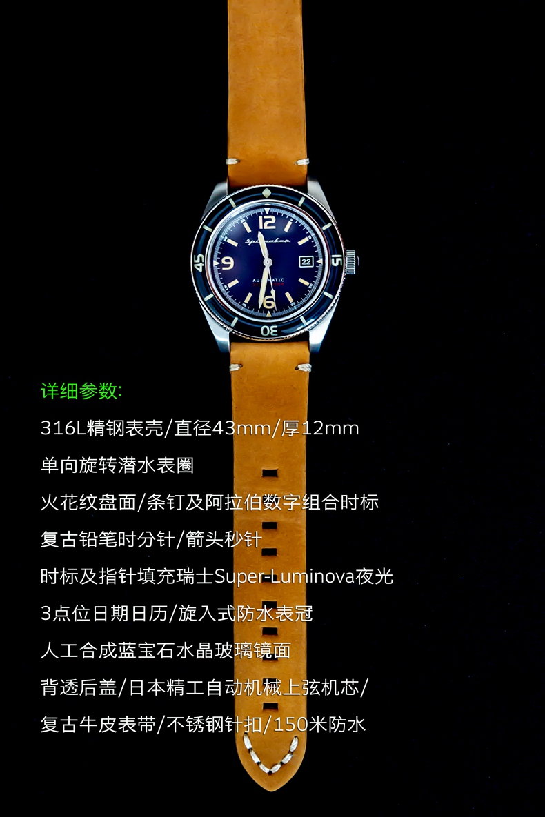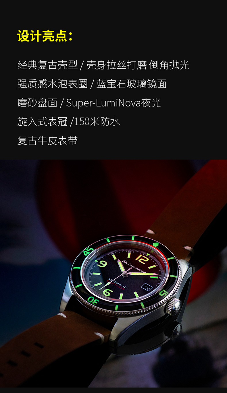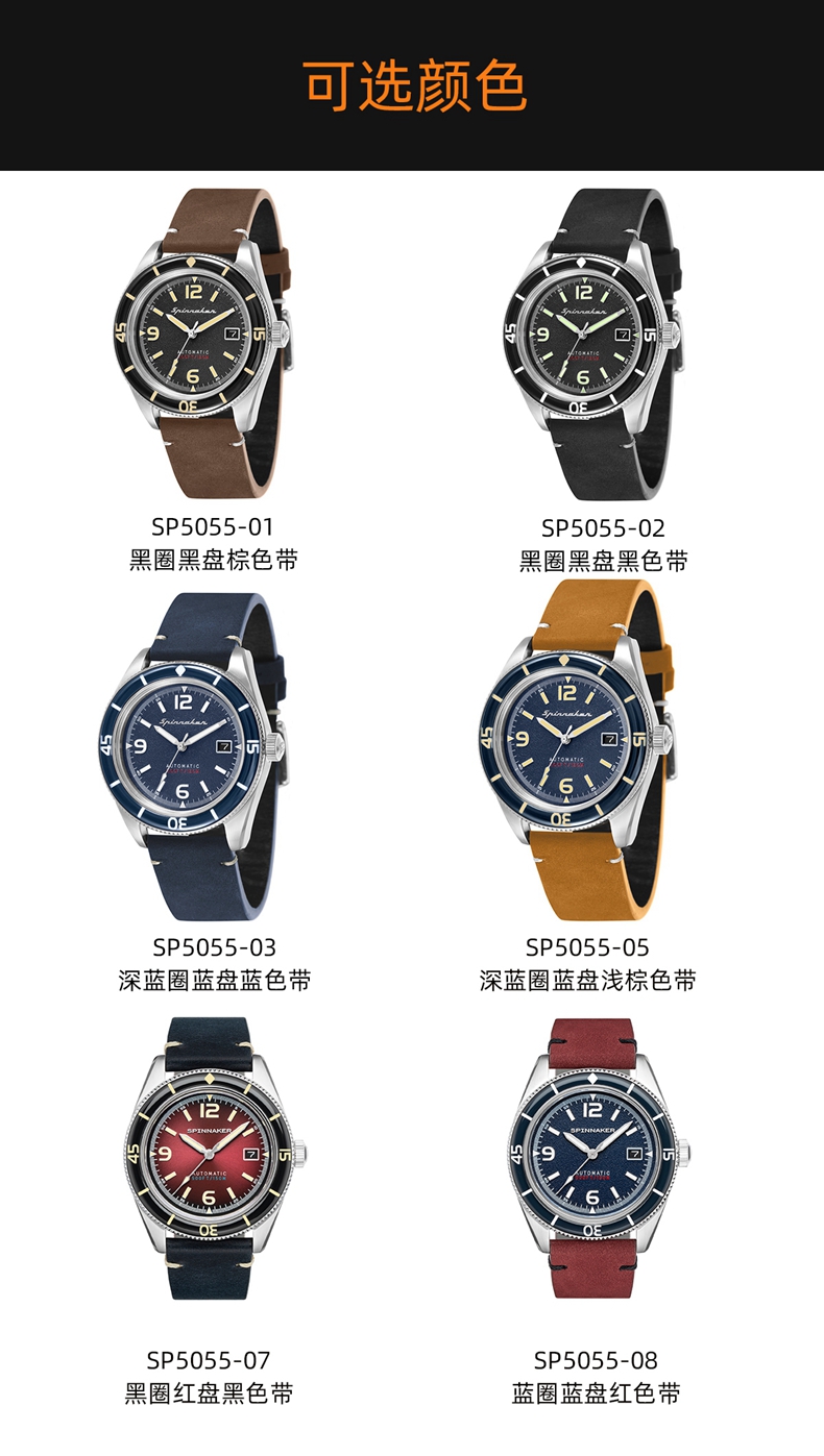 英国SPINNAKER三角帆复古自动机械潜水男士手表FLEUSS夜光水鬼
