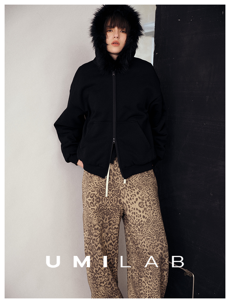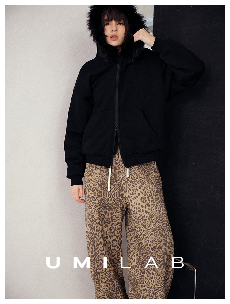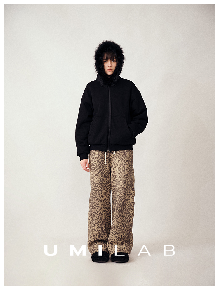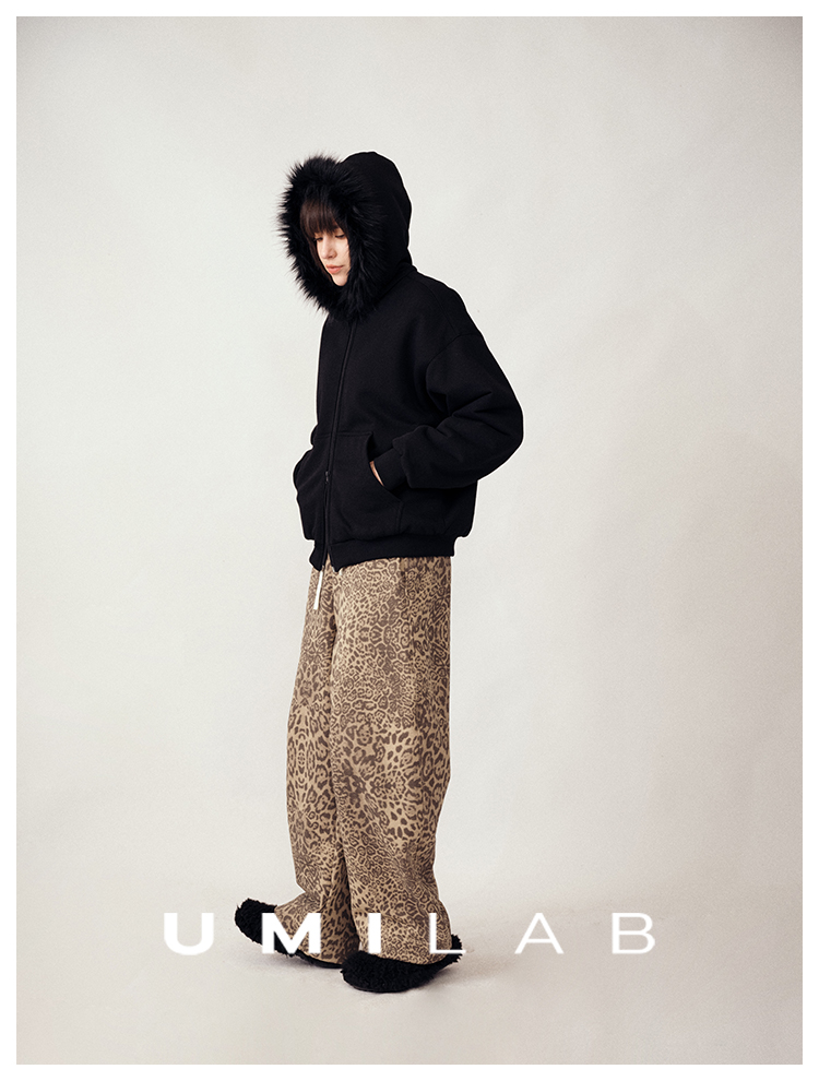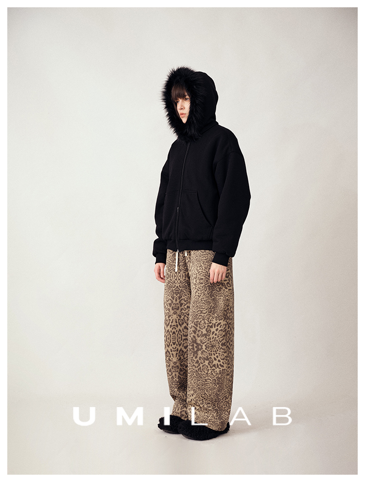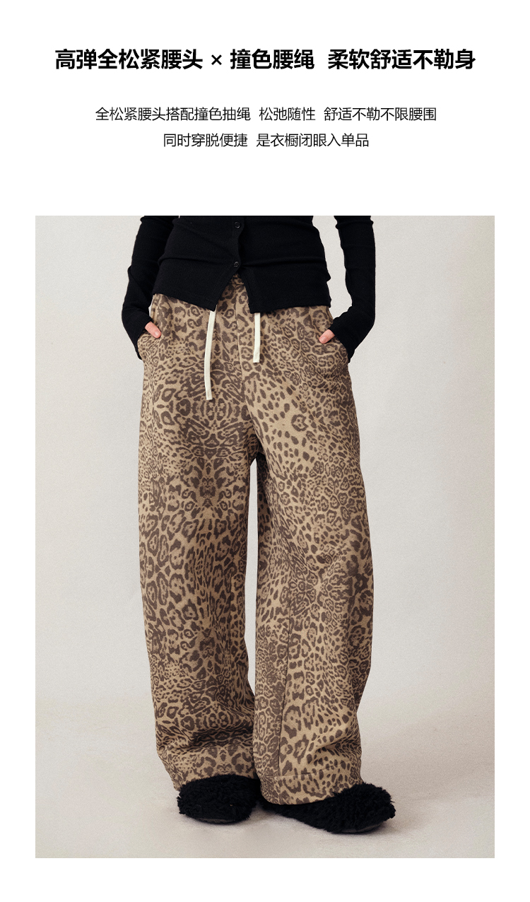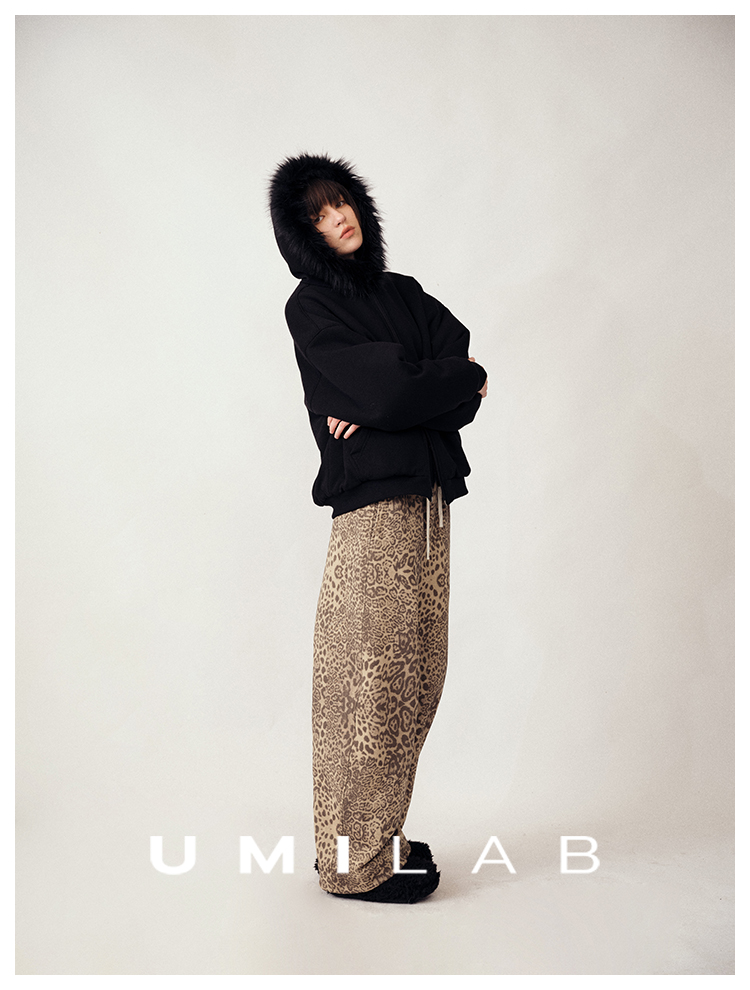 UMILAB|狂野*藏肉神裤加厚100%棉VTG豹纹松紧腰茧型休闲裤P1296W