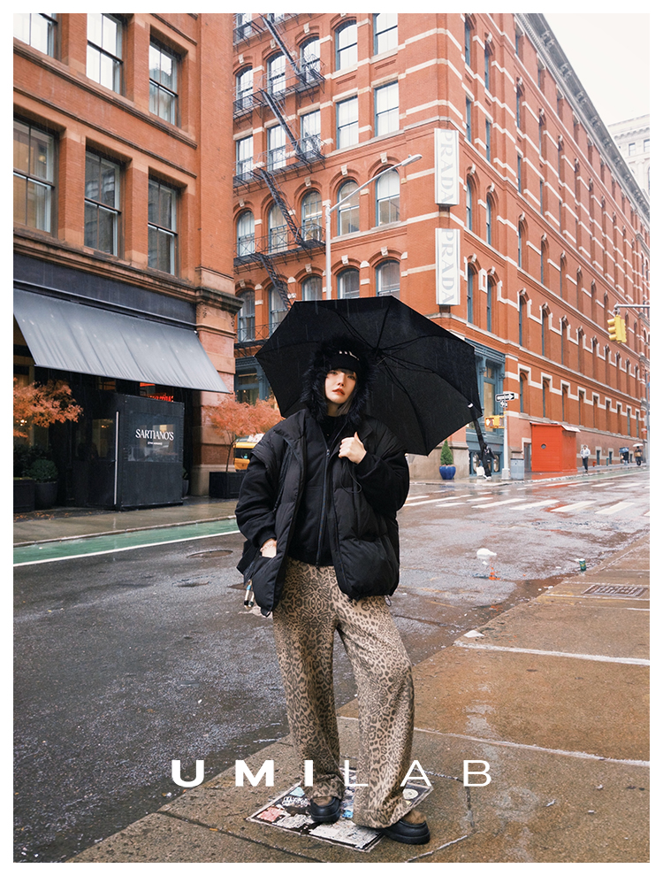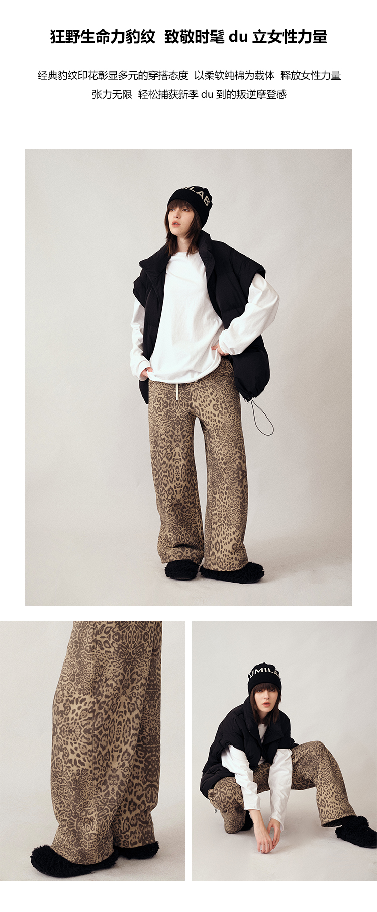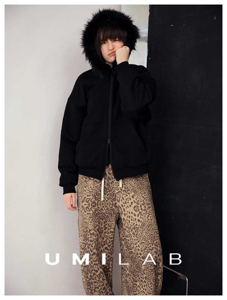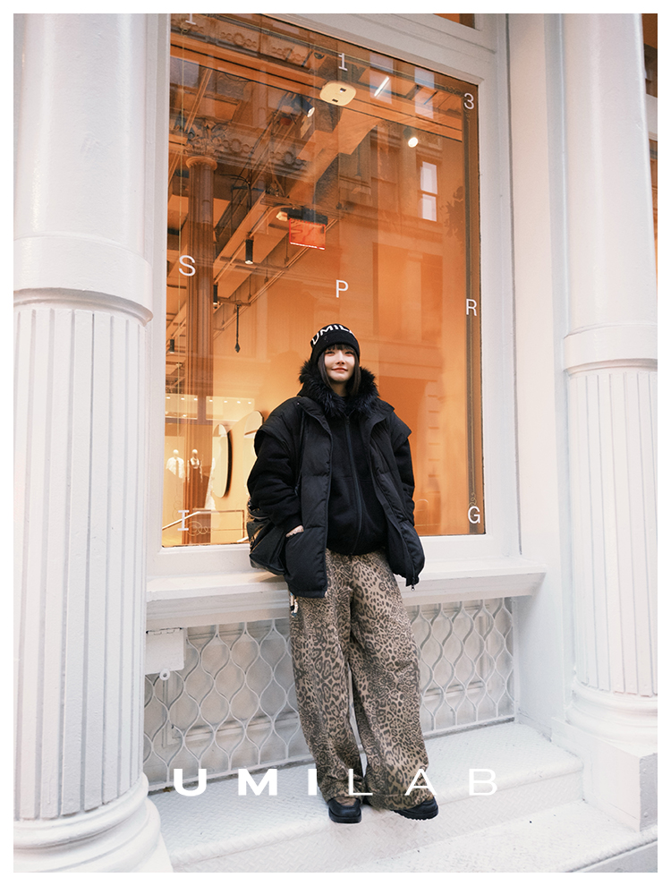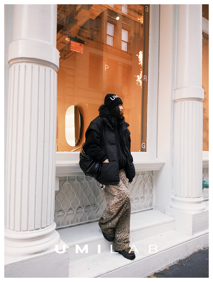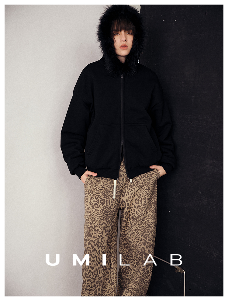 UMILAB|狂野*藏肉神裤加厚100%棉VTG豹纹松紧腰茧型休闲裤P1296W