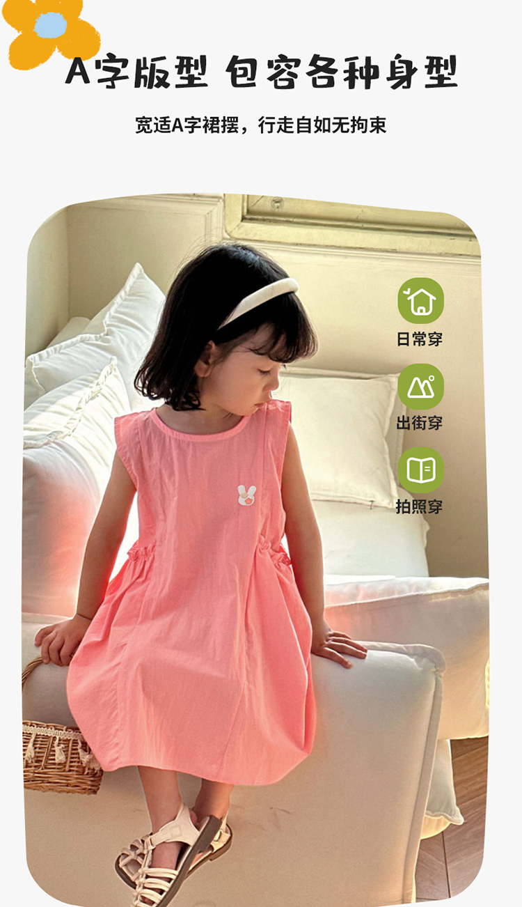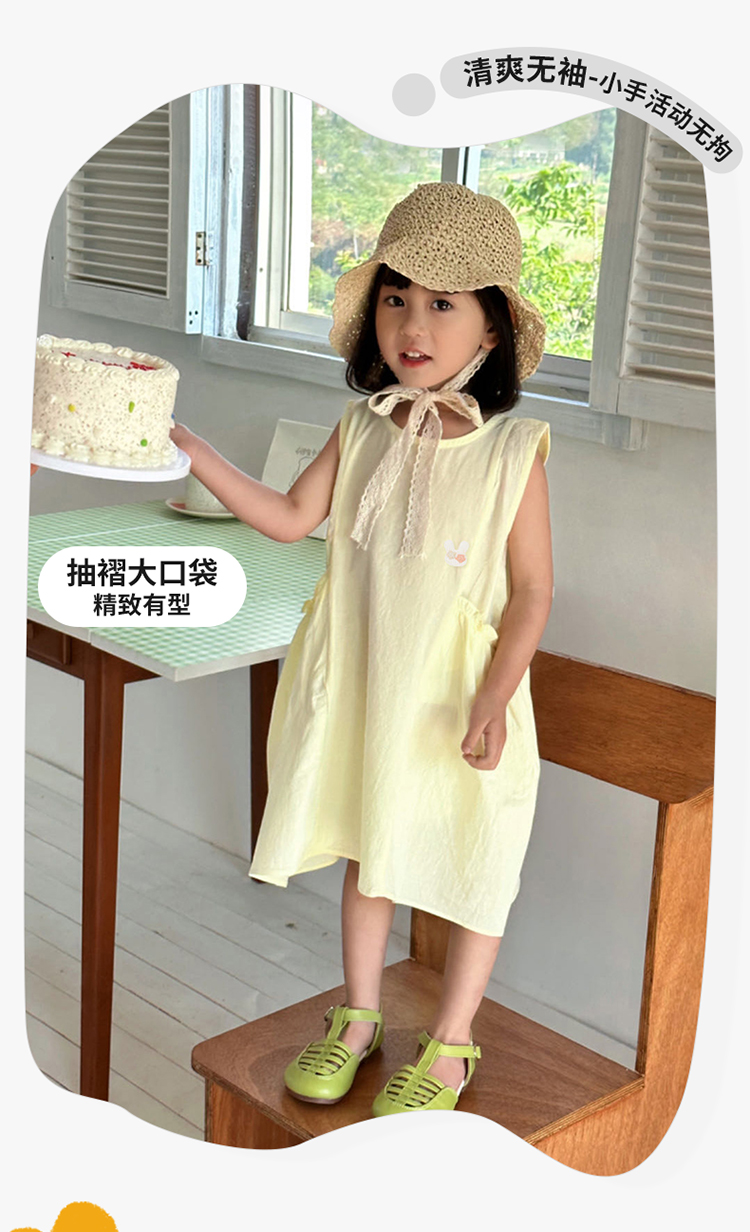贝贝怡2024夏季新款轻薄透气童趣田园无袖连衣裙女童ZB2DQ006