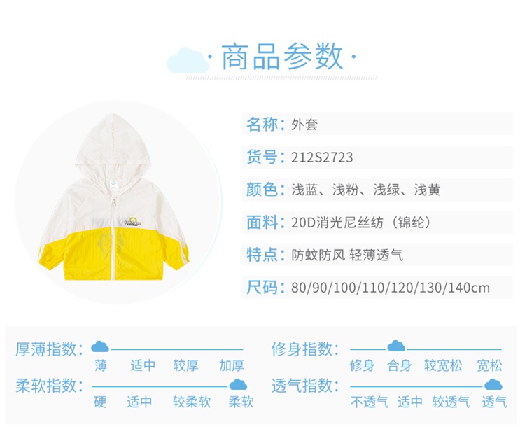 贝贝怡男女童宝宝轻薄透气皮肤衣服外套212S2723