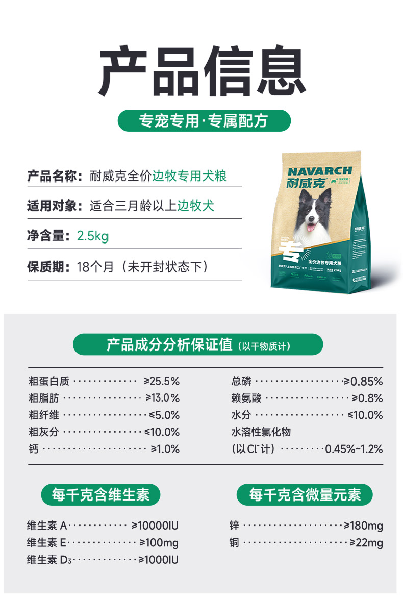边牧经典专用狗粮 | 鲜鸡肉配方 | 强肌健骨 | 呵护肠胃