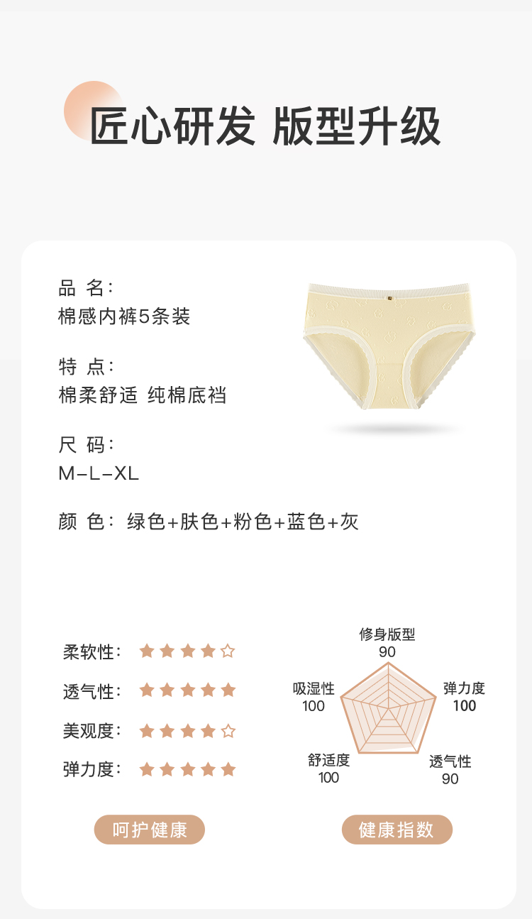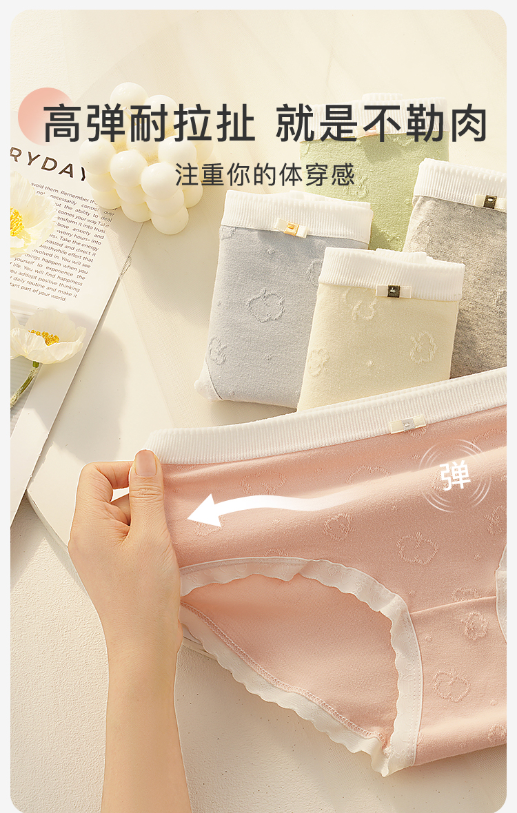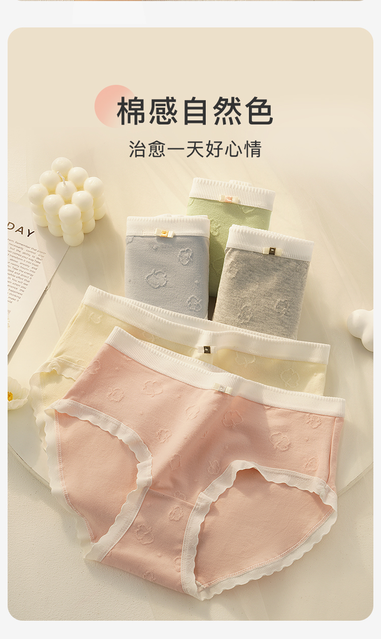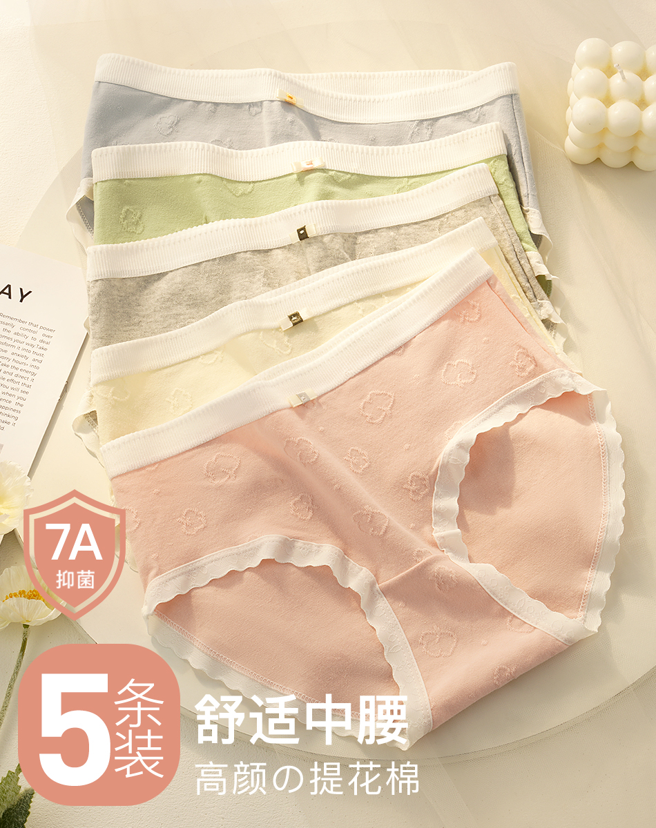 7A抑菌【5条装】内裤女舒适透气100%棉裆高弹舒适不夹臀N4121棉感内裤