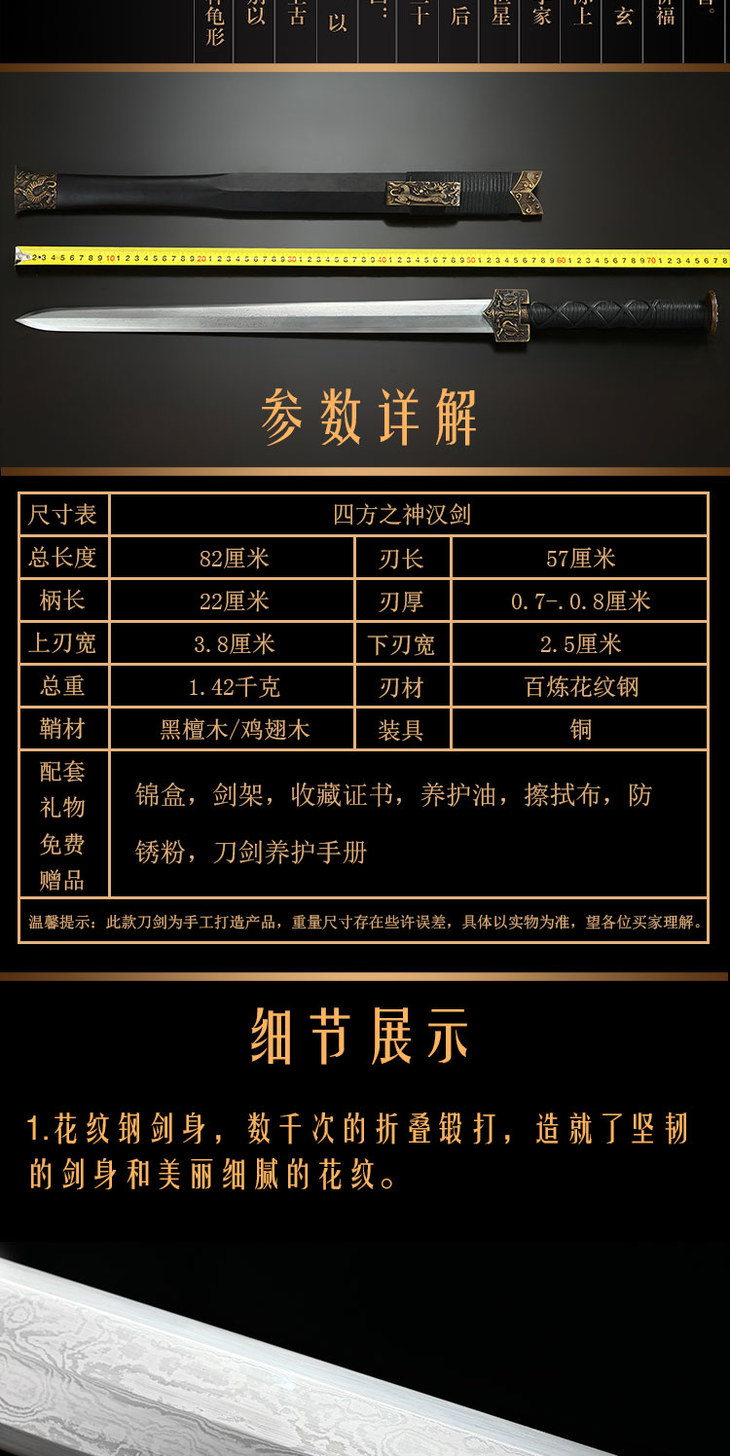 蒋氏 正宗正品蒋氏龙泉刀剑 20寸仿古如意汉剑