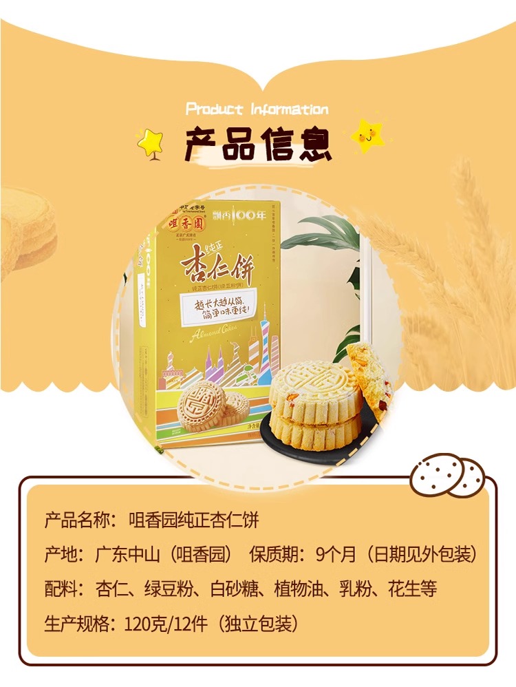- 百年品牌,中华老字号;杏仁饼创始者~