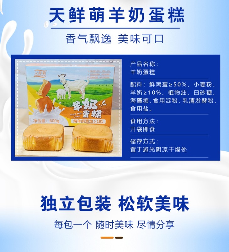 优选|羊奶蛋糕 微甜不腻 鲜鸡蛋含量≥50% 羊奶含量≥10% 不加一滴水 奶香松软 600g/箱