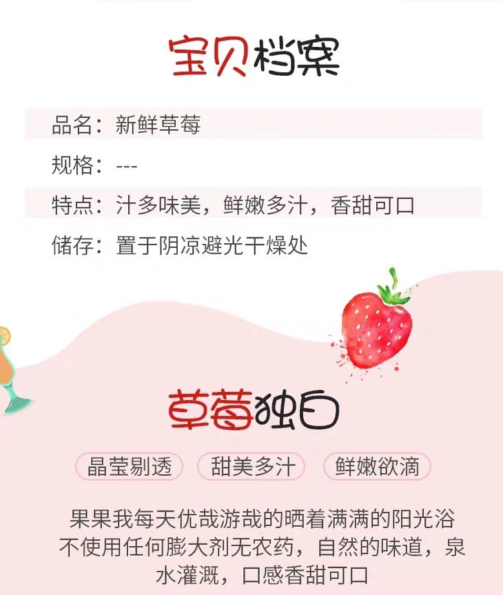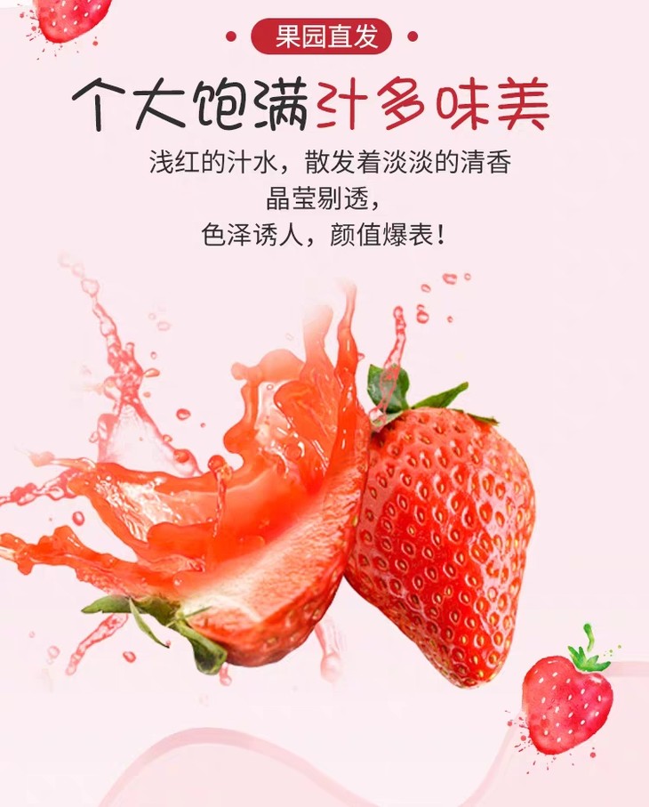 ④该品种草莓,非常适合蛋糕烘焙,冷饮制茶,果形好,颜色漂亮,口感清甜;
