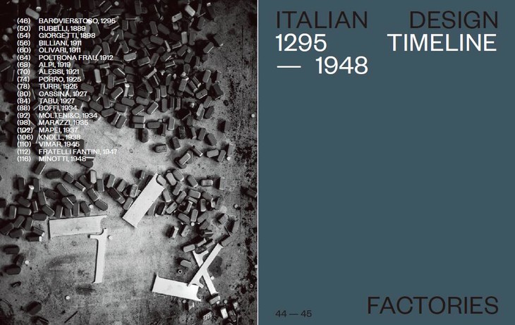 这本特刊的目标是描绘一幅意大利设计工厂地图,并“描述”这些形形色色的工厂如何在组成意大利制造工业版图的过程中发挥越来越重要的作用。首期 Italian Design Factories 介绍了 57 家公司:通过反映其历史、建筑、技术专业知识以及手工艺的有关特征,来叙述它们每家自成一体的故事。