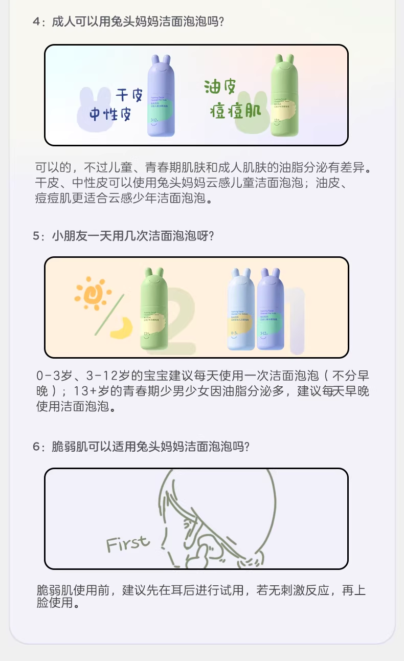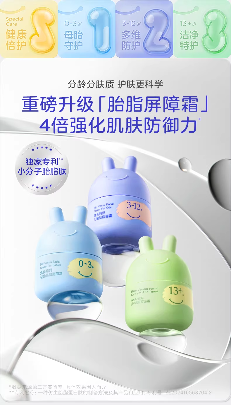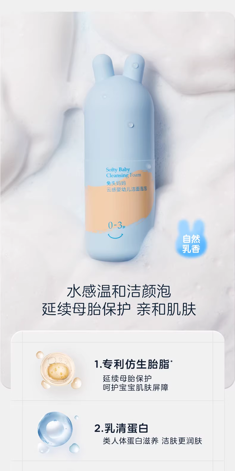 兔头妈妈婴儿童宝宝分龄胎脂面霜洁面泡泡洗面奶洗发沐浴露