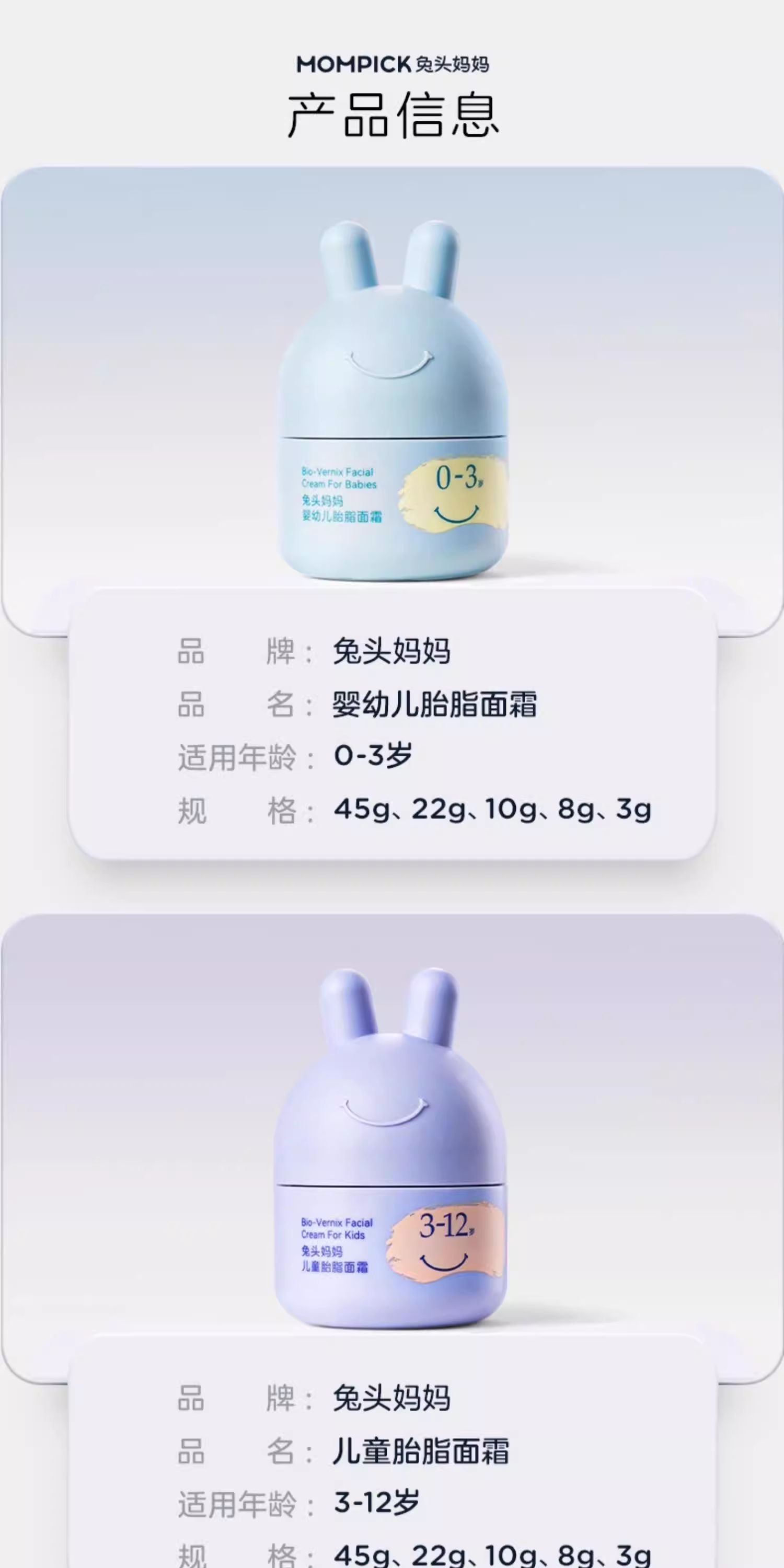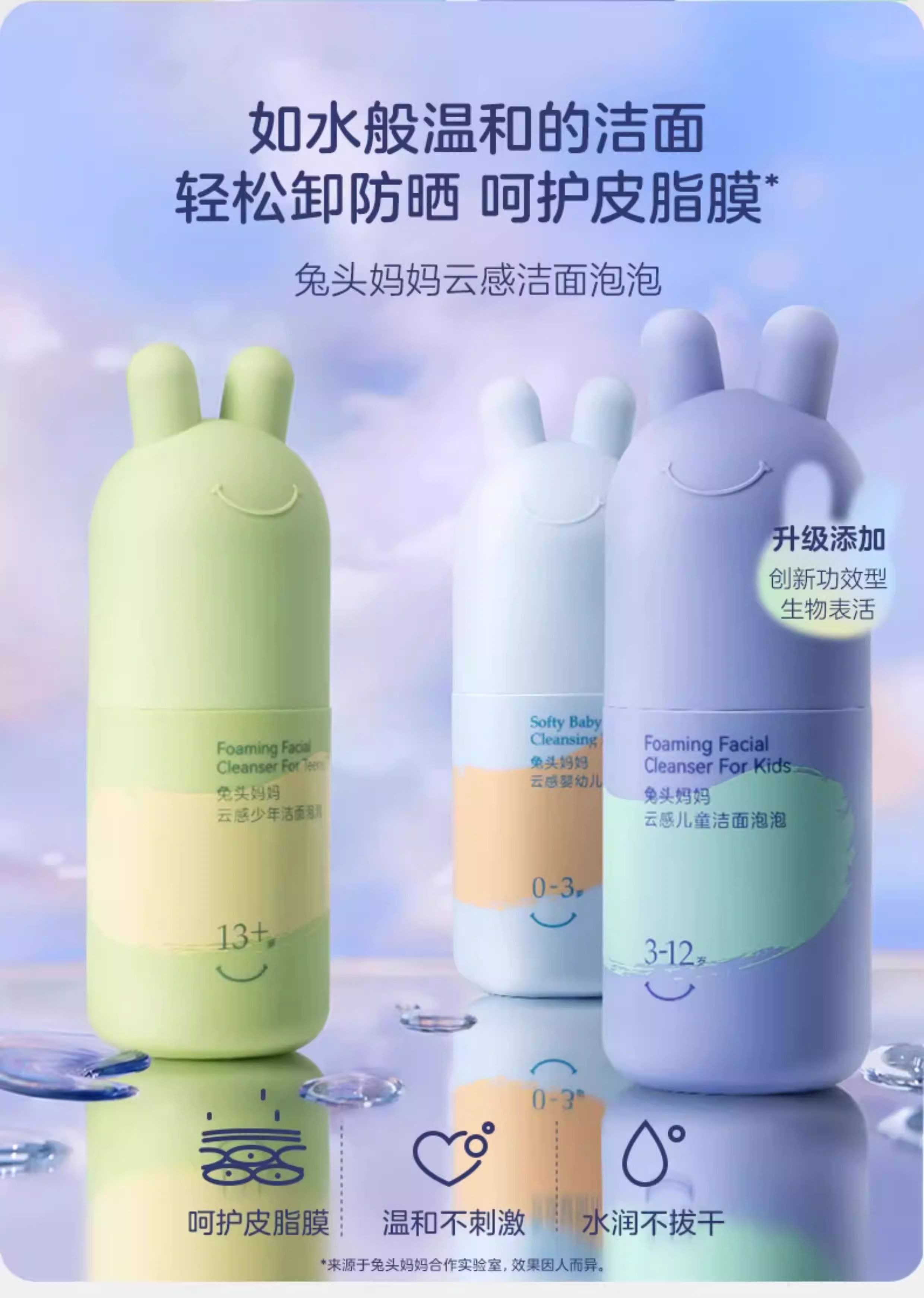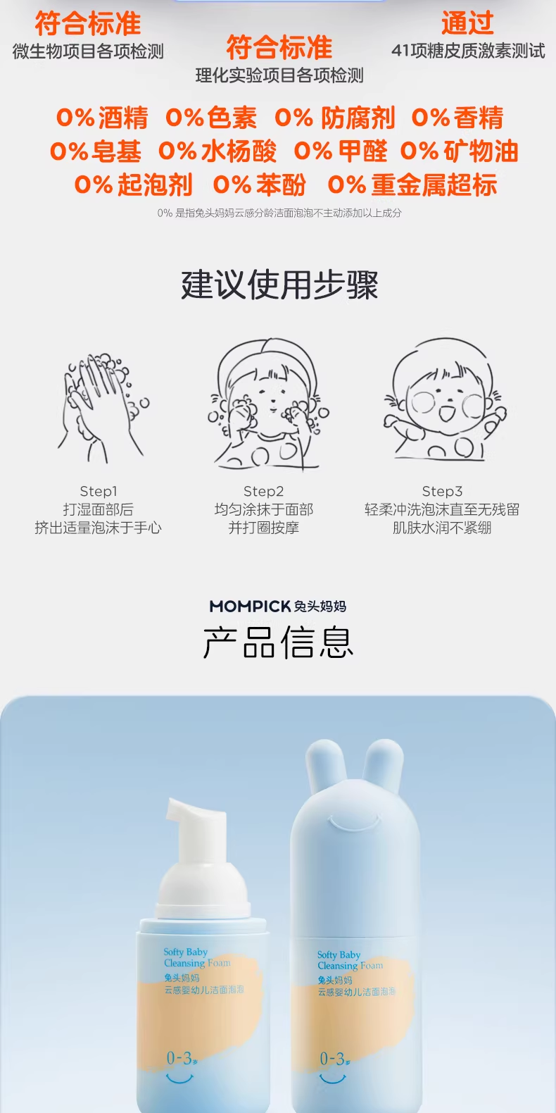 兔头妈妈婴儿童宝宝分龄胎脂面霜洁面泡泡洗面奶洗发沐浴露