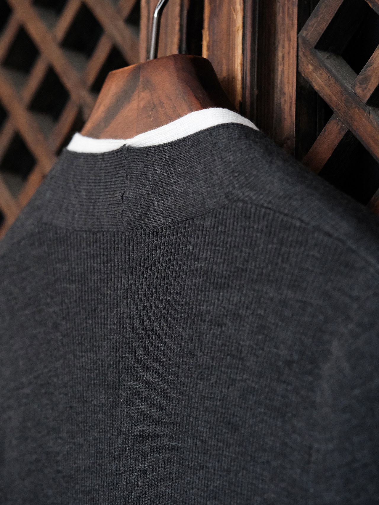 盛唐婧| 假两件双V领羊毛长袖套头衫-深麻灰