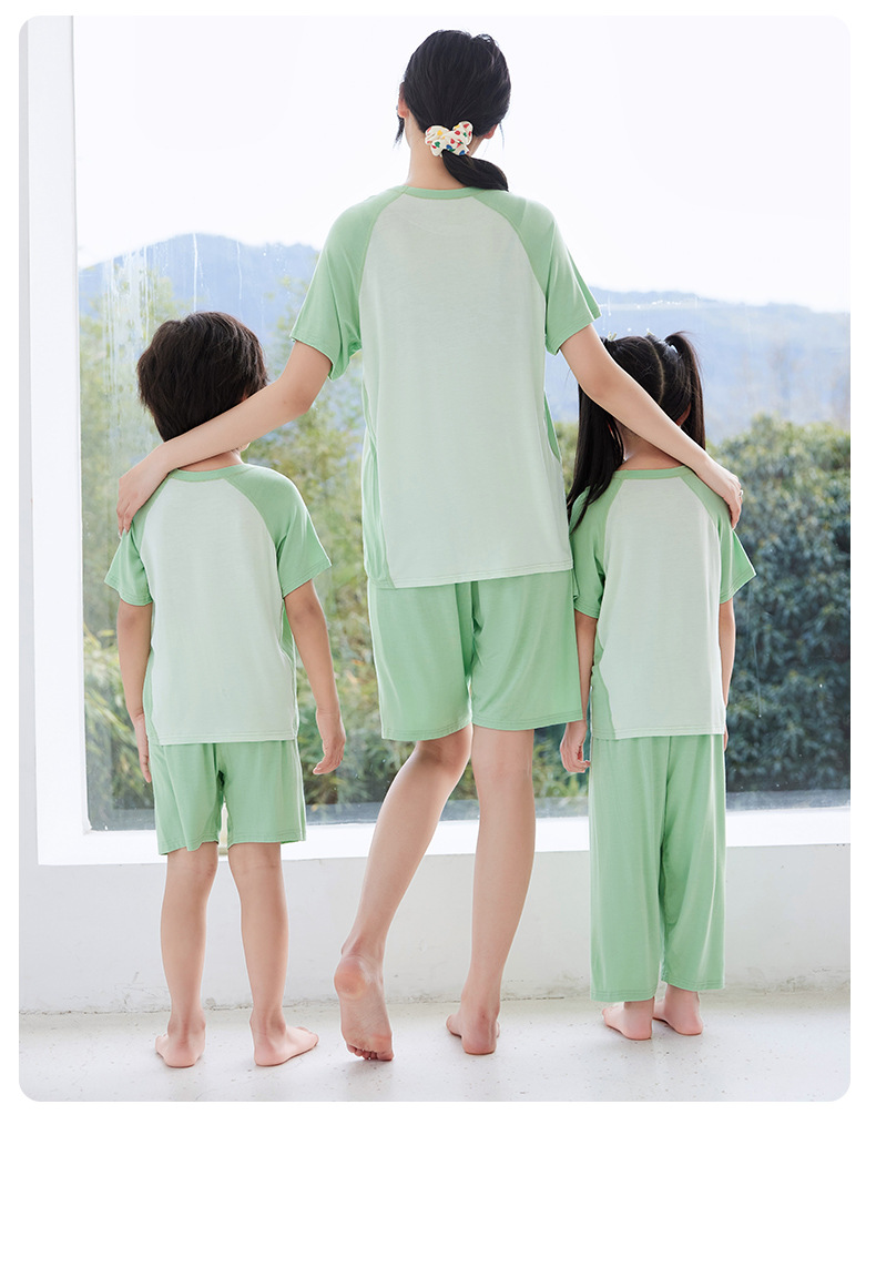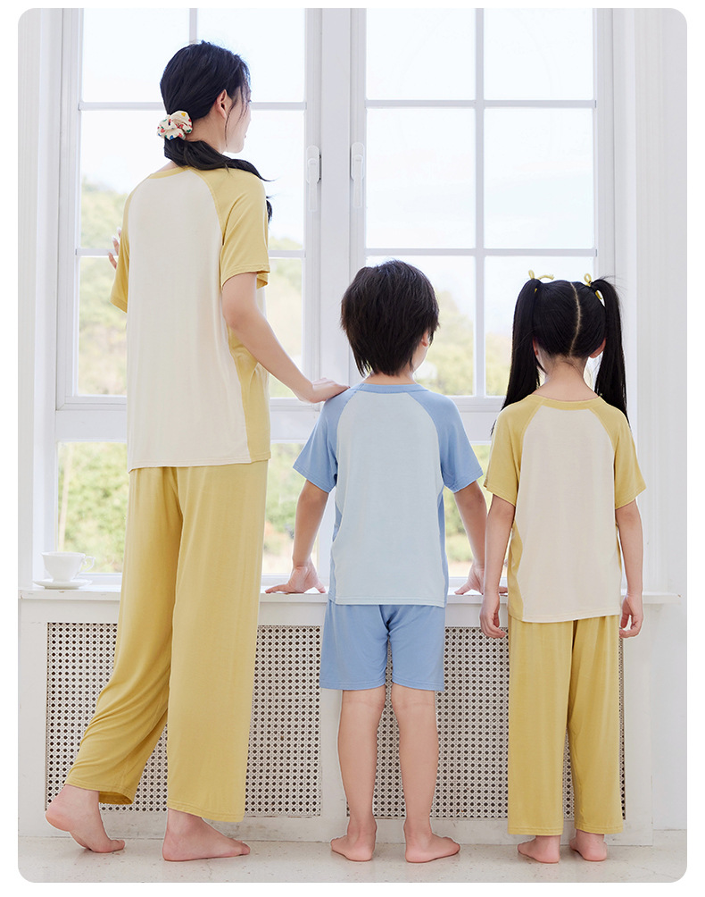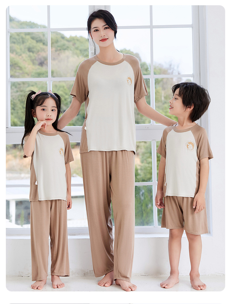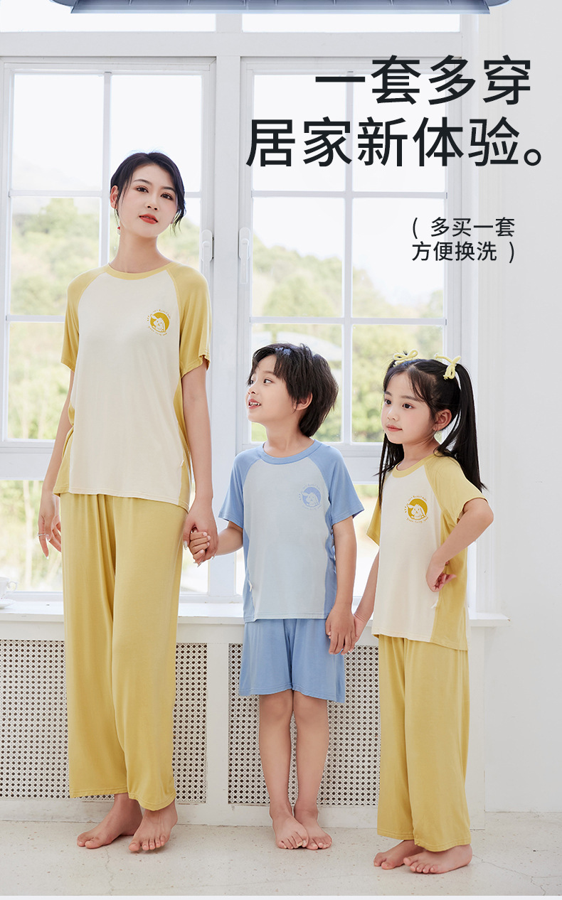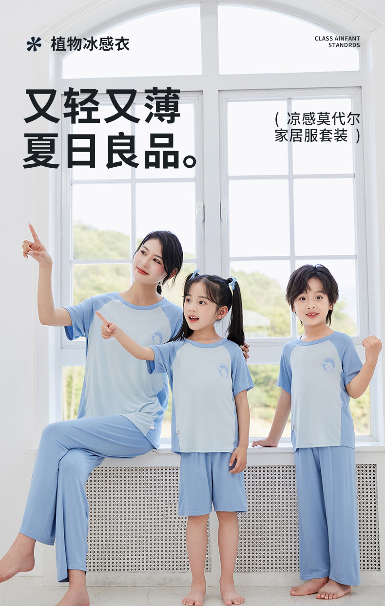 夏季莫代尔儿童家居服男女中小童短袖冰丝睡衣空调服长裤亲子套装