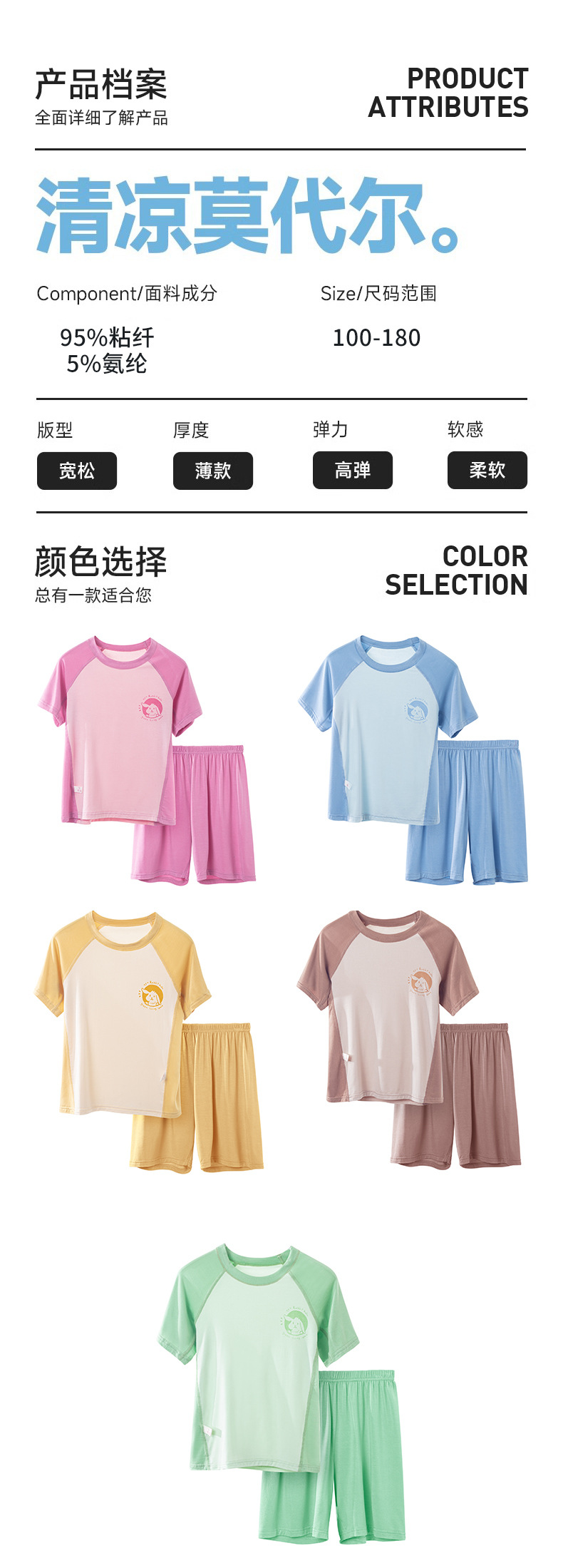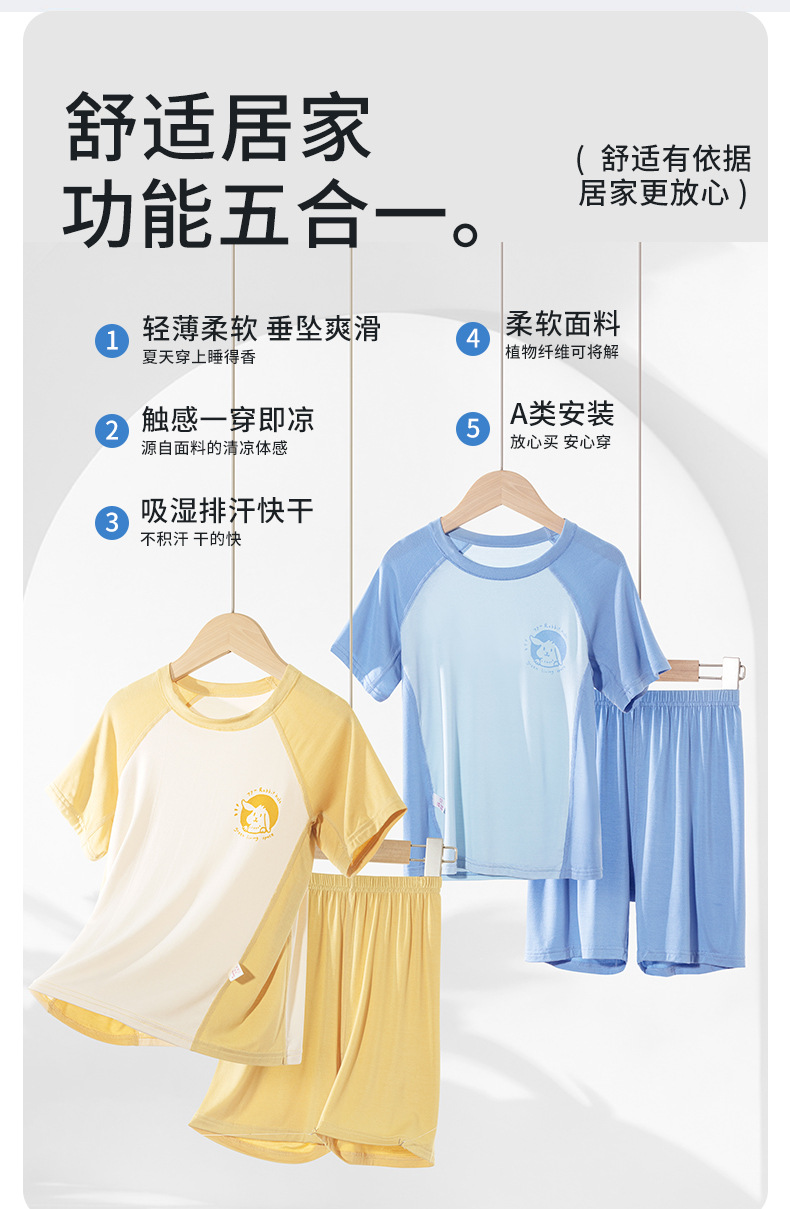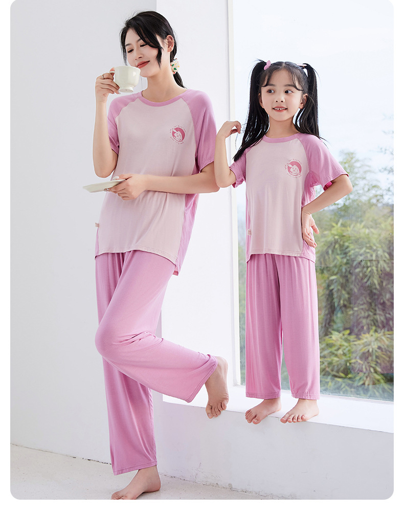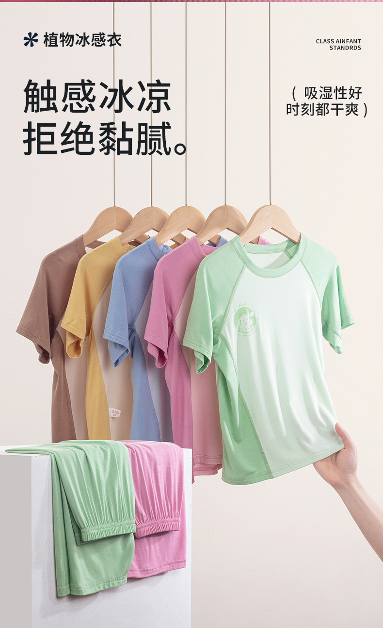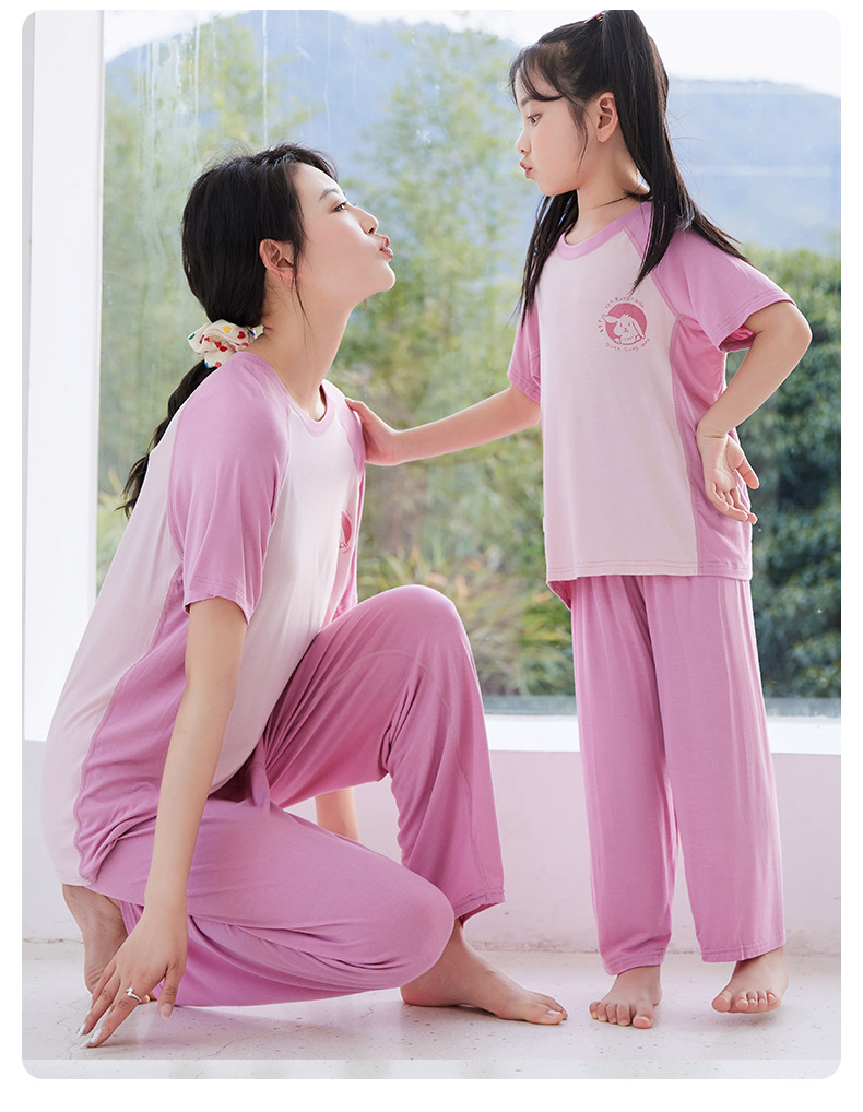 夏季莫代尔儿童家居服男女中小童短袖冰丝睡衣空调服长裤亲子套装