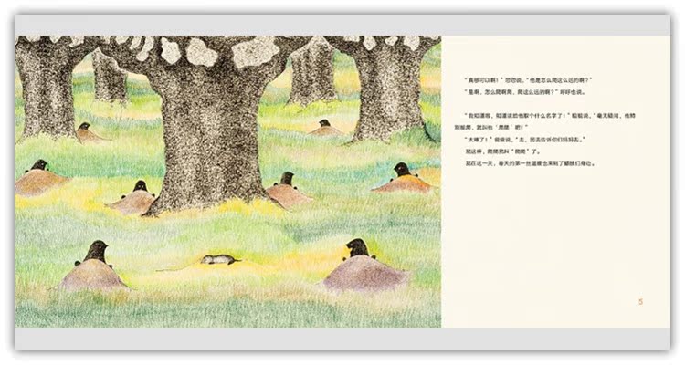 ★自然教育优秀素材。故事中多处涉及动物习性,比如鼹鼠居住在地下,打洞前会计算好路线;兔子妈妈一般生 下孩子就会离开,因为她们知道所有兔宝宝都在同一时期出生,只要把宝宝放在暖和的草堆里,就会有经过的兔妈妈 喂奶。