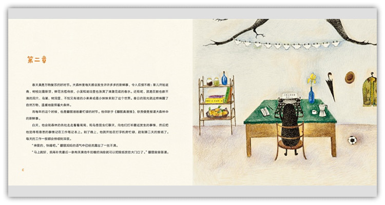 “橡树下”咖啡馆,名副其实,就坐落在橡树下。更确切地说,是在橡树里。山毛榉森林的居民们都特别喜欢这家咖啡馆,因为天热的时候他们可以来这儿乘凉,下雨了可以来这儿避雨,天冷的时候还能进来暖和暖和。夏天在这里可以喝到加了新鲜薄荷叶子、浆果和奶昔的柠檬水,吃到冰激凌。临近冬天的时候,饮品单就会发生变化,热气腾腾的花草茶、干果饮料和可可会将顾客们身上的寒意一扫而光。除了享受可口的饮品,大家还喜欢来这儿读读报纸,聊聊森林中的新鲜事。