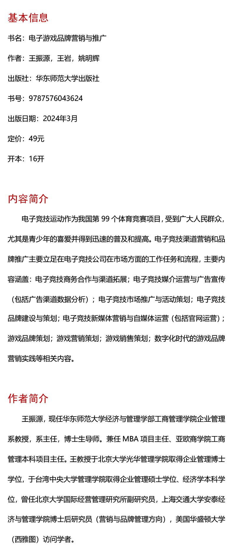 电子游戏品牌营销与推广 电子竞技运动 王振源 王岩 姚明辉