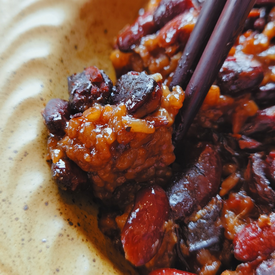 甑糕的历史最早可追溯到3000多年前西周时期,算是贵族甜点,后来才进入百姓早餐列表,但我知道甑糕,还是在《花好月园》热播时,真正吃到,更是要到西安十一游咯!传统的甑糕原料是糯米和红枣。制作比例大概是:糯米65%、红枣35%。甑昼连夜烹,琥珀糯米绵,蜜枣甘饴透。蒸一锅甑糕,也真是一项精雕细刻的饮食工程。先是泡米、发酵,上锅蒸两次后再装甑,铺上枣子、葡萄干、糯米、芸豆或红腰豆等等,足足五层,接着再大火蒸两小时,慢火六小时,最后在炭火的余温中焖制一夜后再加水,使锅内热气冲入甑内,充分保证枣香和糯米香混合,让甑糕唇齿留香。