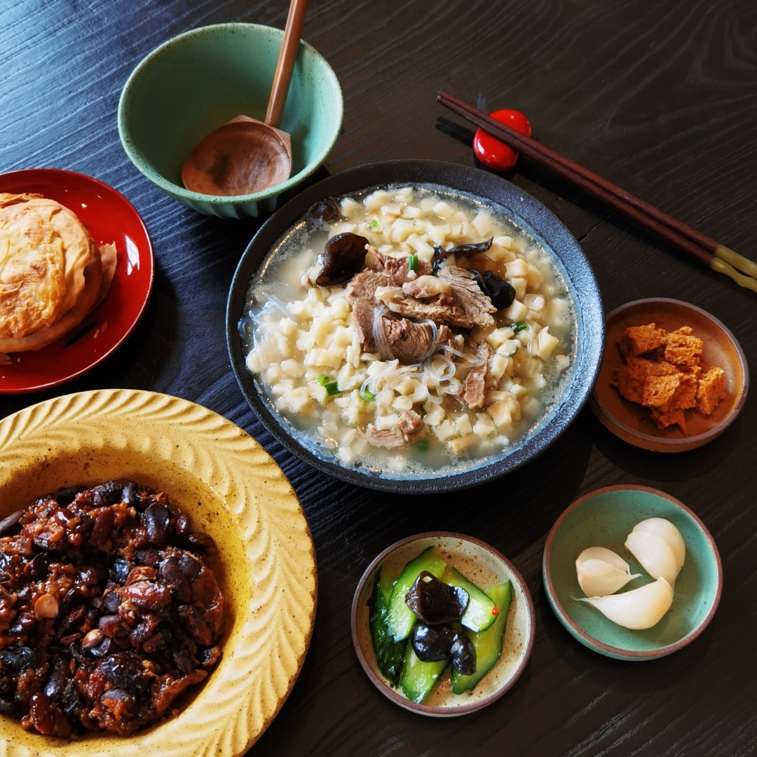 我个人觉得是好吃的,糯米蒸得恰到好处,劲道不沾牙,而且枣泥特别多,糕体湿润,层层错落有致,很是香甜!我还特意点了羊肉泡馍来搭配,还烤了个肉夹馍,来了点糖蒜,有氛围了哦!
