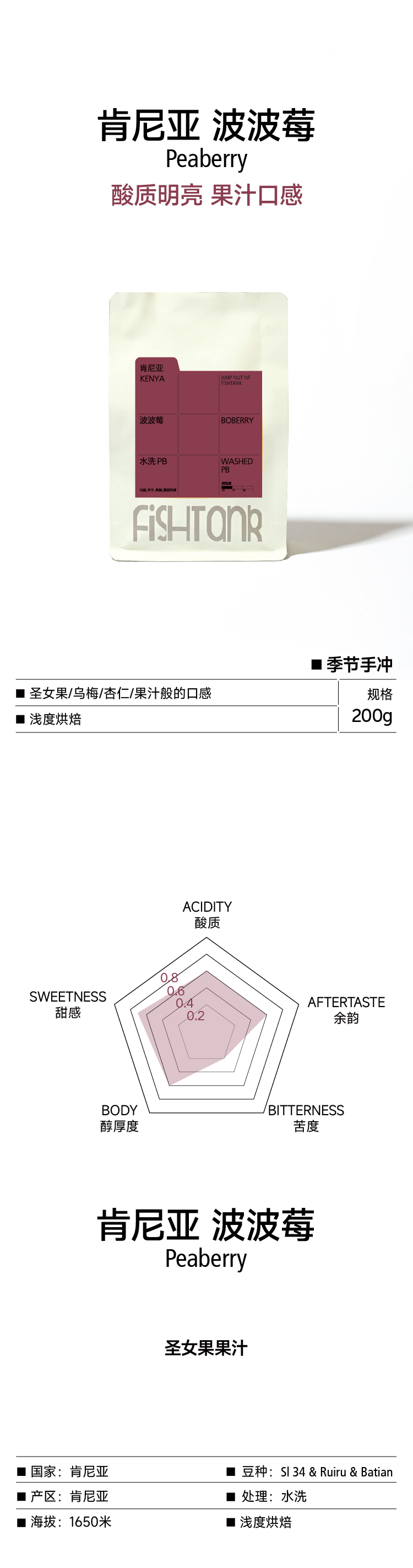 肯尼亚 波波莓水洗PB 手冲咖啡豆200g
