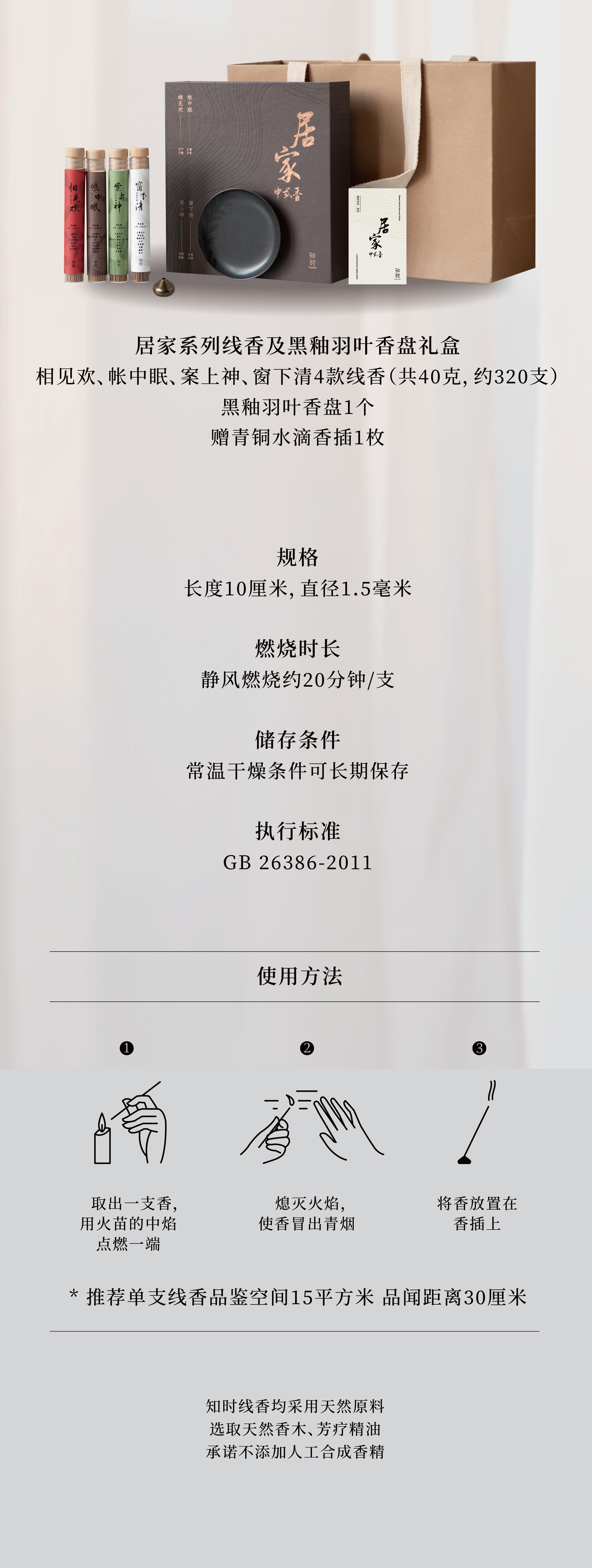 知时居家系列线香客厅书房卧室浴室用香