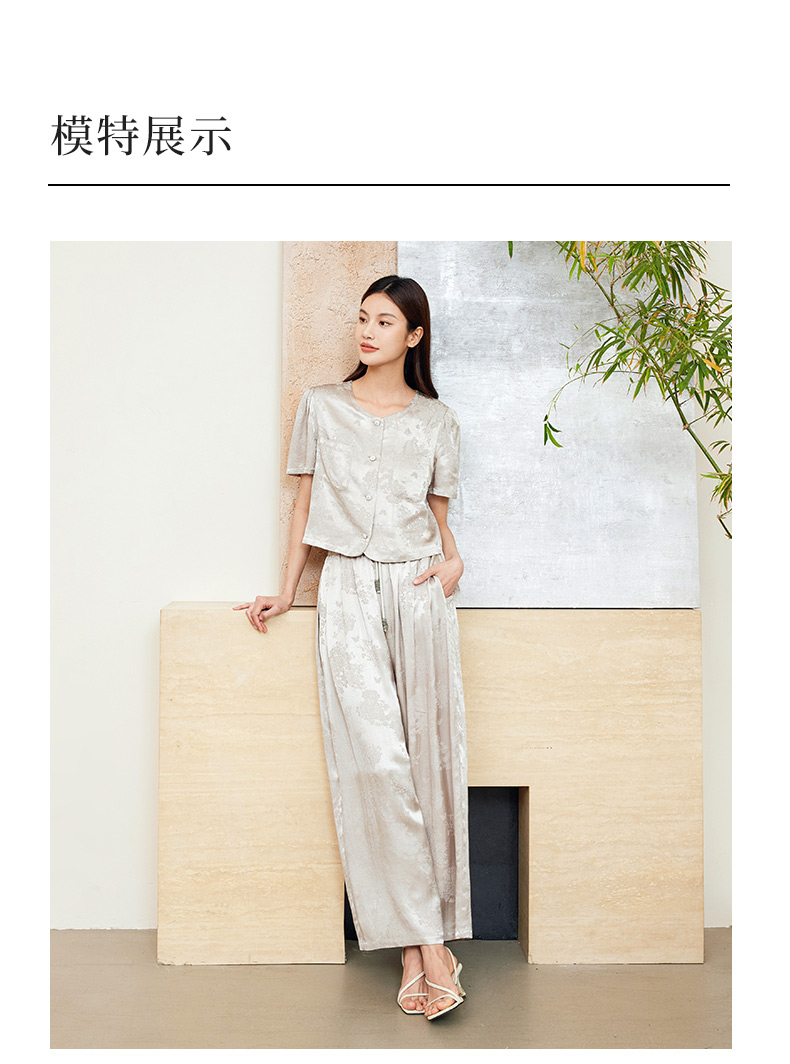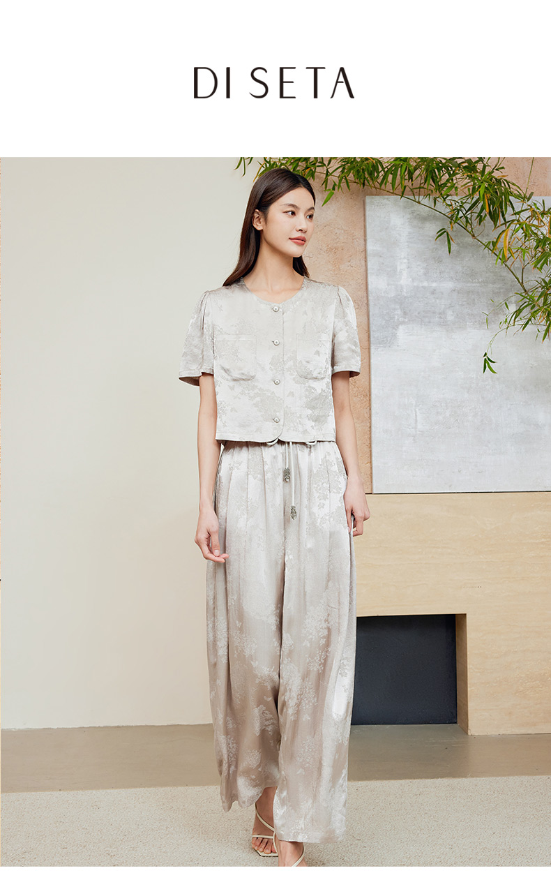 玳莎莱赛尔天丝气质两件套女2024夏季新款优雅复古新中式提花套装 EB46201